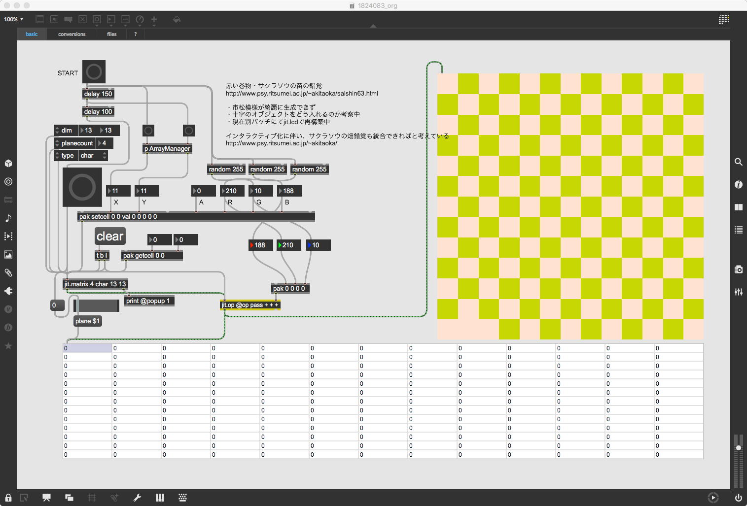 上のパッチは清水さんの「補色残像」の元パッチを完成させたものである。元画像が「イモムシ???」とギョッとした。「fpic」というオブジェクトは初めてだったが、こういう便利なものも増えていたのか。