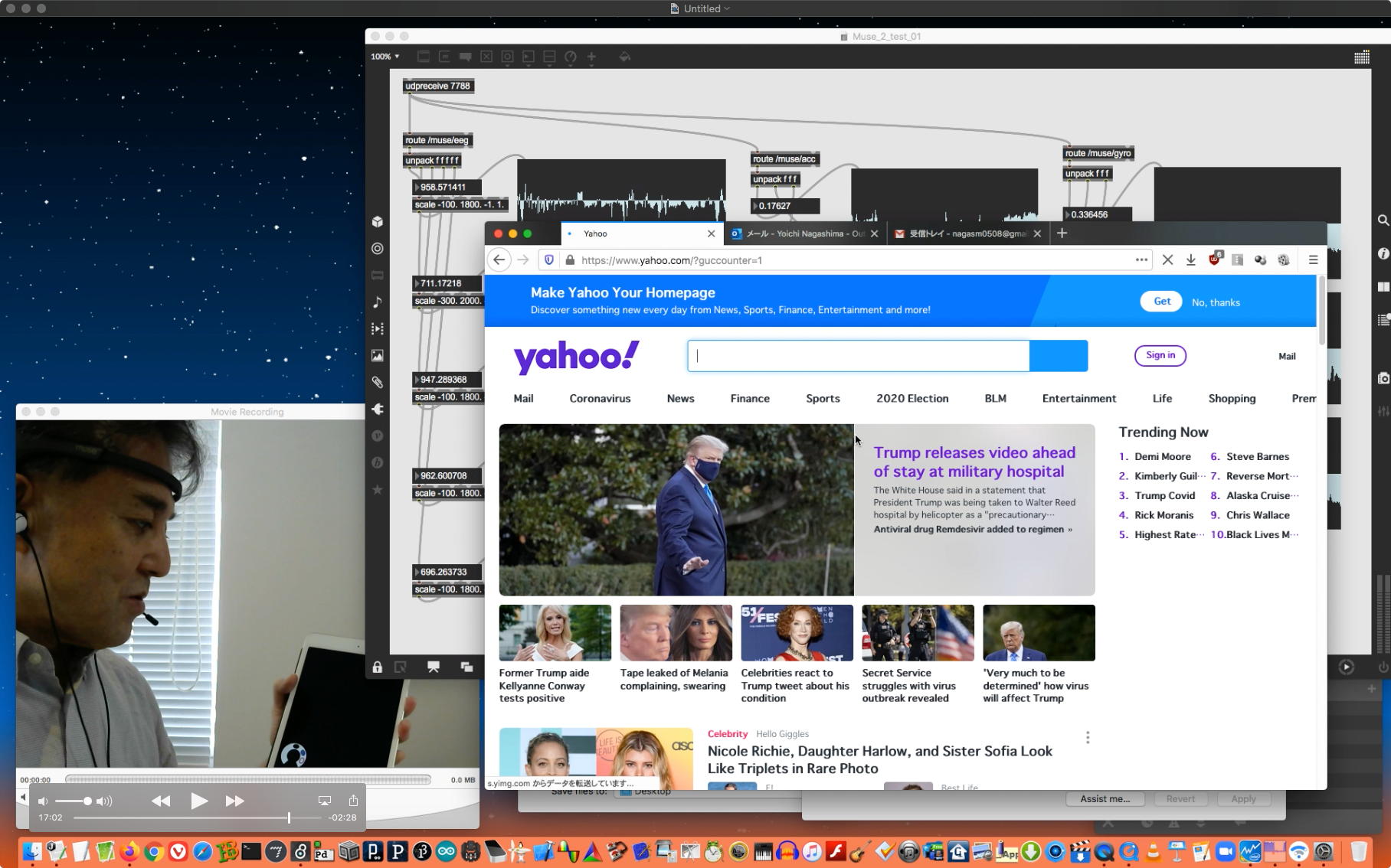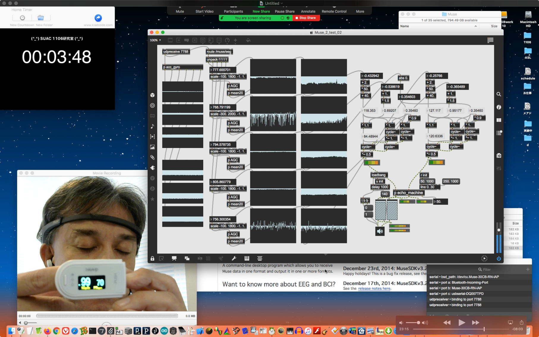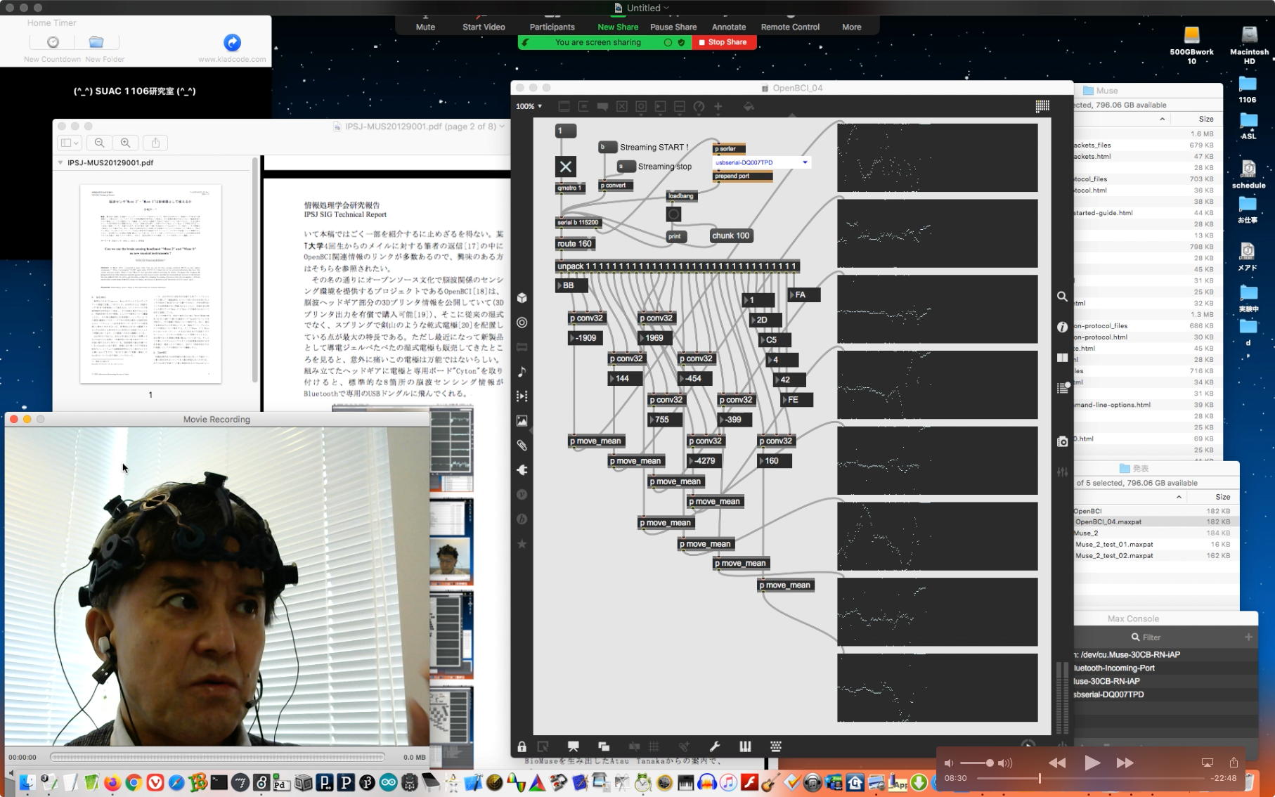 当日はZOOMでのプレゼンは例によって「Keynoteの棒読み(Powerpointの棒読み)」を避けるために、またまたライヴのアドリブで話す予定だが、そこで実際にMuse 2を装着してデモするつもりなので、万一、トラブルで失敗した時には「ここを見てね」というYouTube動画を保険のために上げておく、という意味もあるのだ。 そして途中でちょっとモタモタしたものの、約20分の YouTube動画 を作ることで、忘れかけていた段取りをだいぶ思い出した。 まだ発表まではほぼ1ヶ月あるので、また近づいたら、講義の中で学生に見せつつデモする事で「思い出し」をすることにしよう。