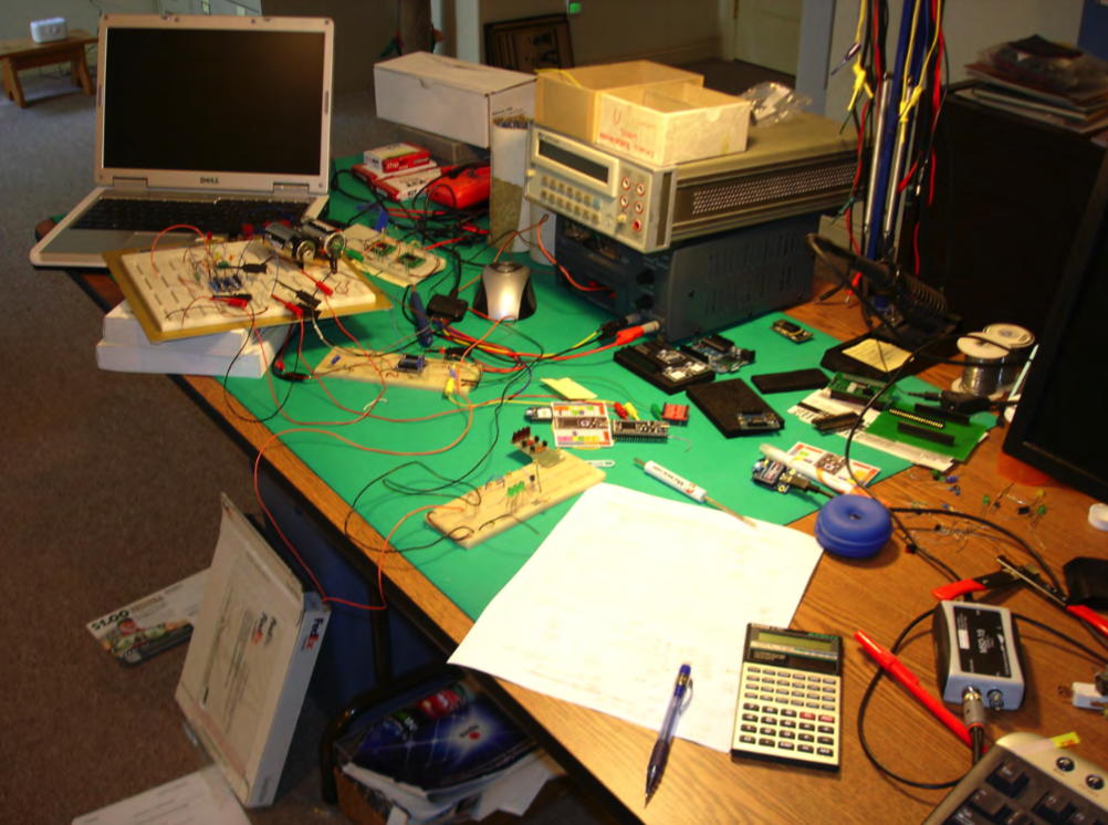全23章からなる「実験」の前にイントロという章があり、その末尾にはJonathan A. Titus氏のラボらしい上の写真がドンと鎮座していた。 興味があるならどうぞ頑張って勉強して楽しんで下さい、という冒頭の英語はとても簡単であり、一読に値する。 その最後には「IMPORTANT」として、このテキストの実験ではコンセント(100V-120V-240V)に繋がる強電のPower Supplyが必要であるものの、実際の電子回路では1.5Vの乾電池で8本分の直流12Vまでの弱電しかないので安心だ、と書いてくれていた。 ちょうどこの前期の僕の 基礎演習E でも、解説の冒頭できちんと書いていた部分に対応していた。 以下、この「An Introduction」で見出しとして並んだ項目を、以下にごくごく簡単に紹介するので、電子工学の入り口を勉強してみたい人は、元の テキスト と対応させて確認してみて欲しい。