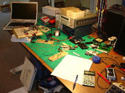 そこで 日記シリーズ から辿ってみると、「Propeller日記」の Part1 は「2008年2月9日」から始まって、以下の写真のような実験(ソフトウェアで2系統のNTSCビデオ信号を生成しつつ、ビットごとにシリアル処理をしてMIDI送信・MIDI受信 !!)をして、「2008年5月21日」の Part5 で「トランジスタ技術」誌に2ヶ月連続で記事を書いたあたりまでで一旦、終わっていた。