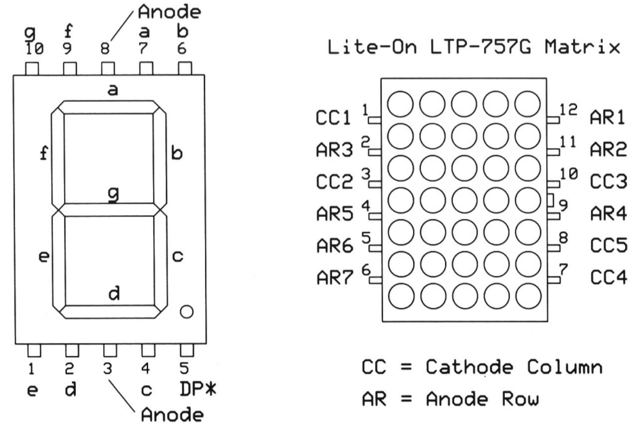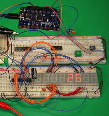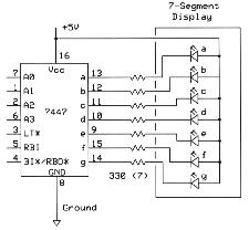 このあたりのディジタル技術の進展は1970年代のものである。 僕が大学を卒業して新入社員としてここらの勉強をしていた1980年代前半には、このようなICが活躍していたものの、1980年代から登場したマイクロコントローラ(MCU)によって、テキストの次章で紹介するように、この「4ビット2進数の入力」→「7セグメントのLED表示」は全てMCUのソフトウェアが行うようになった。 一時は一世を風靡した7447も、その後は完全に消えた。 ちなみに僕はめったに「7セグメントLED」を使うことがなかったが、実験室の部品棚にはジャンクで仕入れた正体不明(メーカも型番も不明)の大型7セグメントLEDがいくつもあったらしく、調べてみたら応用例として以下の2件が出てきたので紹介しておこう。