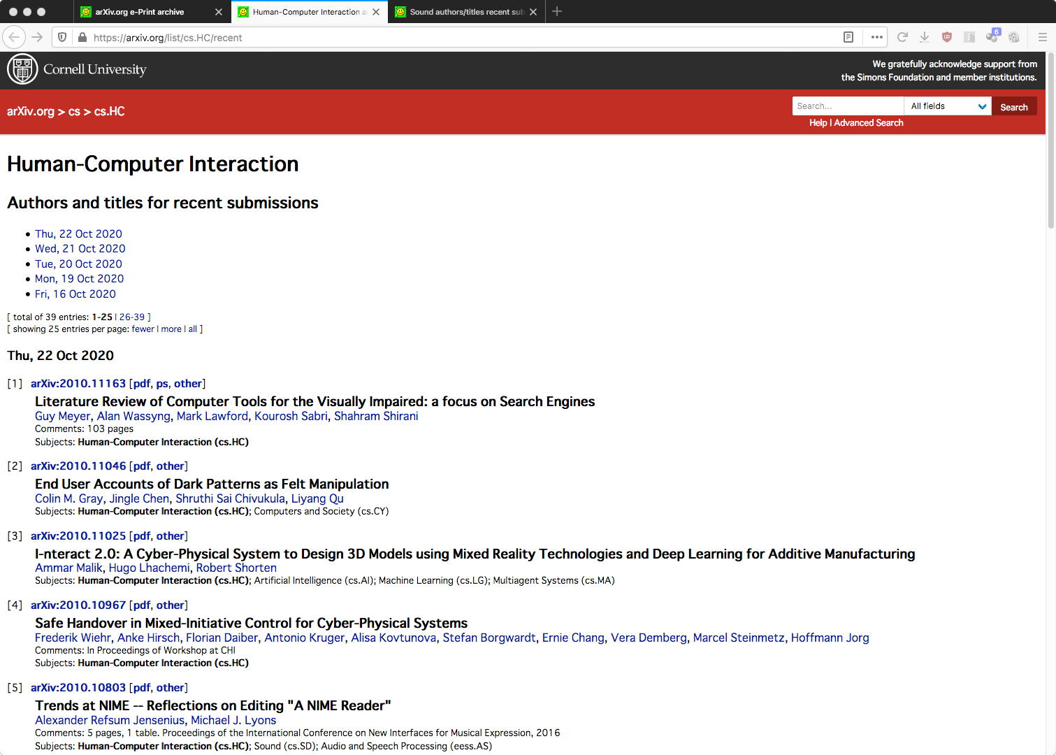 さて、そしてここからは「考慮中」というお話である。 ちょうどNIMEコミュニティからは、来年のNIME2021の情報が届いた。 「New Interface for Musical Expression 2021 - June 15-18, 2021, New York University Shanghai, Shanghai. NIME2021 Theme: “Learning to Play, Playing to Learn”」というもので、なんとNY大学の上海キャンパスで開催だという。 果たして来年6月に中国に行けるのかどうかは不明だが、「これから」を考える時期なのだ。 今年はCOVID-19のために3月からというもの出張が完全にゼロになったが、既に上のようにオンラインで6件も発表していた。 そして今年度の残りについては、およそ以下のような候補が残っている。 もちろん、全てがオンラインである。 これらについては、およそ今月前半には作戦を立てて発表応募をする必要があり、考え所なのだ。