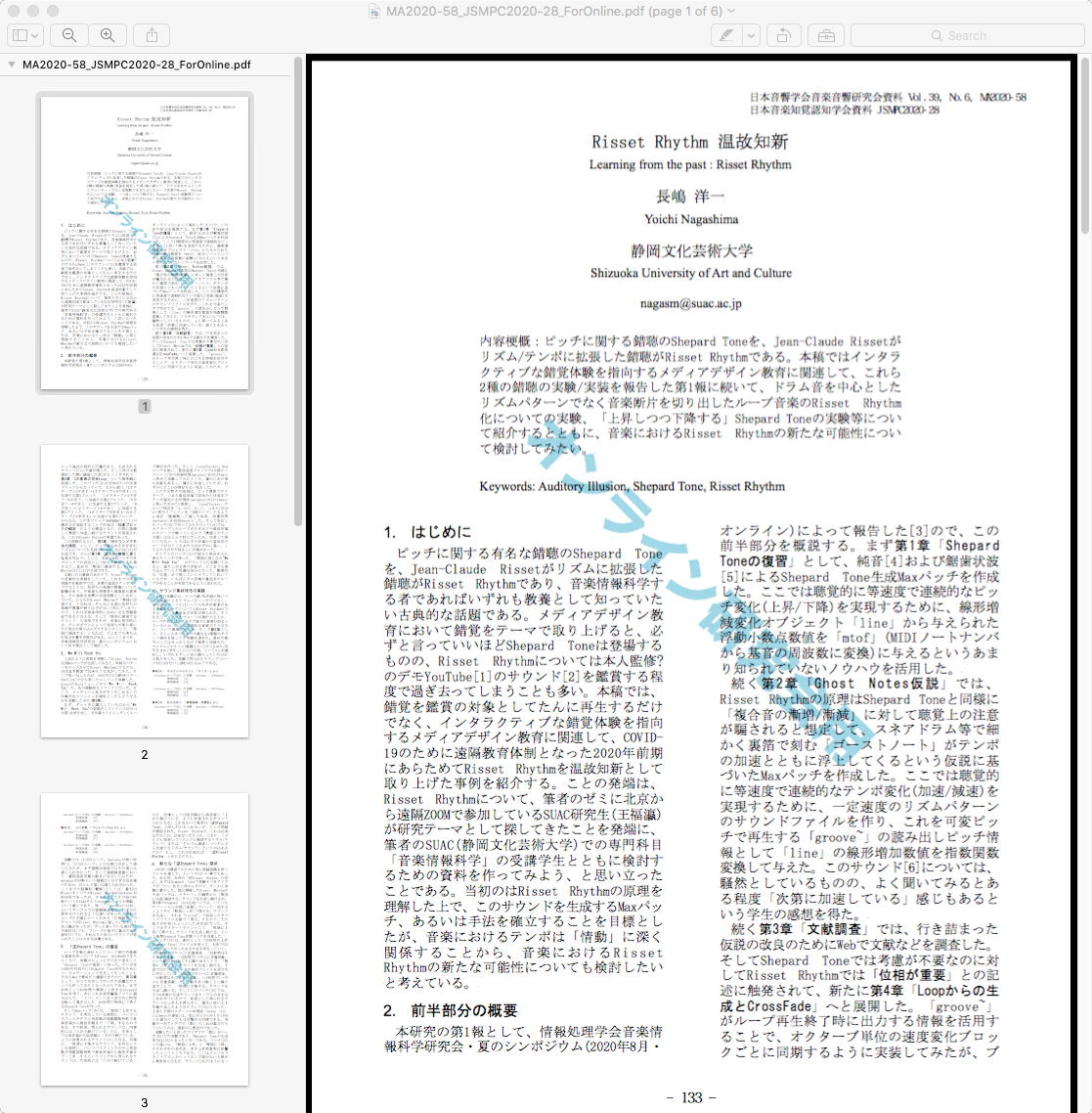 - 「SUACスタジオレポート2020と書評3件」、 2020年6月7日『情報処理学会音楽情報科学研究会』