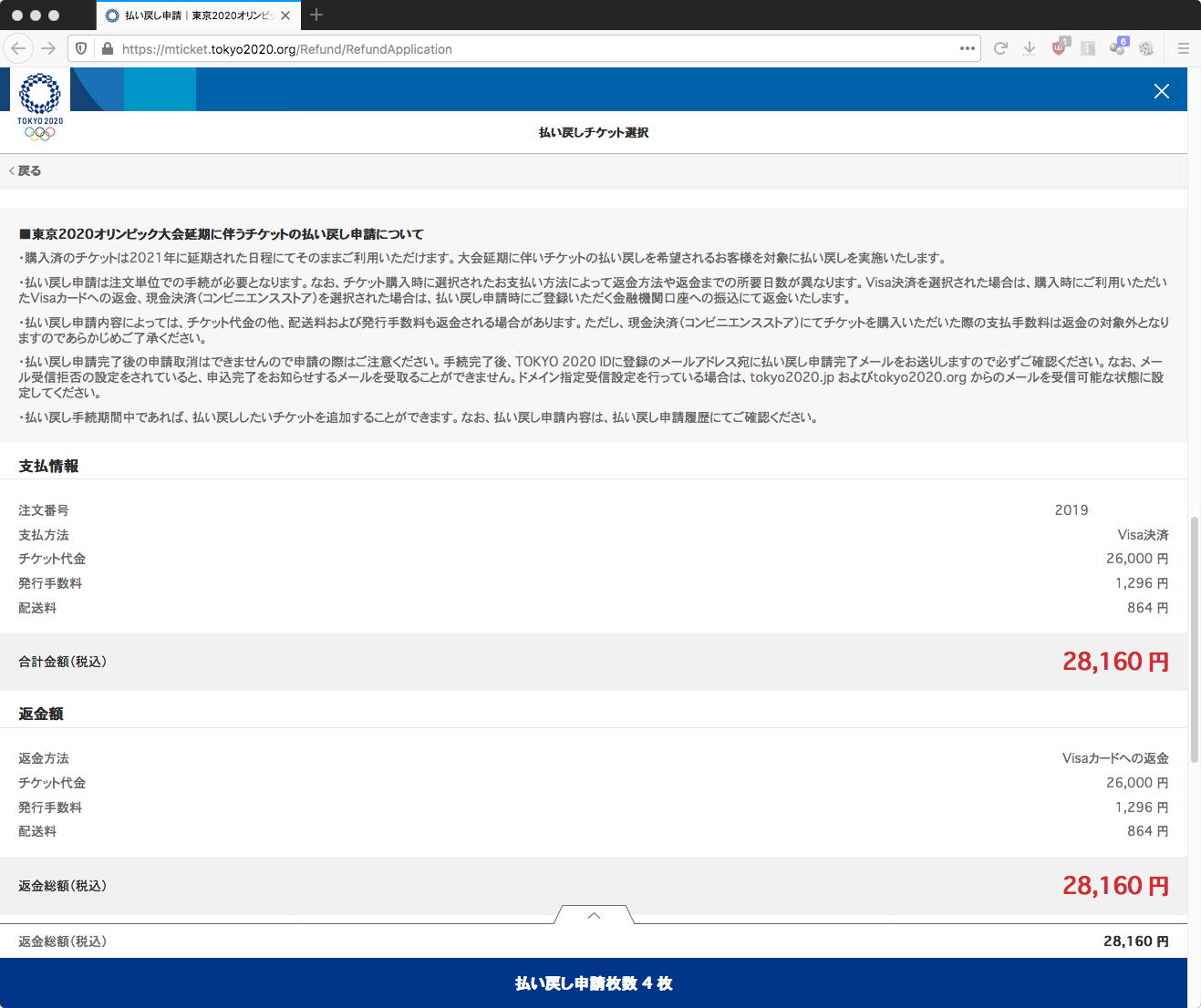 しかしCOVID-19のために「延期」が確定すると、有給休暇申請を取り消し、全てのホテルの予約を取り消し(手数料はコロナのために無料で、代金がカードに払い戻し)、フライトチケットをキャンセル(→カードに払い戻し)、あとはオリンピックのチケットの払い戻しだけ・・・となっていたのが、遂に今朝、手続きとして完了した(実際の支払いは12月あたり?)のである。 ANAのフライトのキャンセルもコロナのために手数料は無料、オリンピックのチケットもVISA経由だったので手数料は無料ということで、唯一、差し引きで取られたキャンセル手数料は、「青森→小牧」のフジドリームエアラインズだけ、ということで、さすがFDAはセコいのだった。 払い戻し手続きのためにお仕事パソコンに置いていた「オリンピック2020東北旅行」というディレクトリも用済みとなって、「オリンピック2020東北旅行_幻」という名前でzip化してバックアップHDDに移動した。 これで本当に「幻」となり、僕にとって「東京オリンピック」は、ほとんど記憶にない(当時6歳)1964年のものだけとなった。