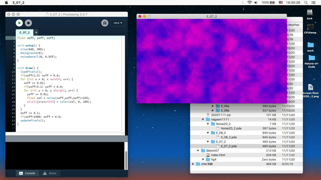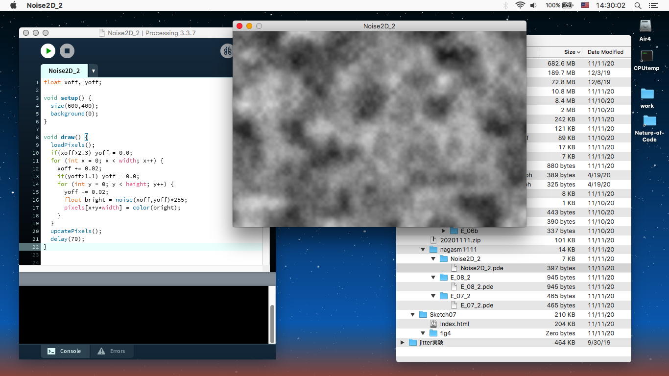 そして、北京の王さんから今週の勉強の成果として届いていた、 Nature-of-Code のIntroductionの章のまとめと練習問題を確認して、さらにちょっとだけ改訂したものを、上のように3つ作って、王さんに返信した。 これでなんとか、「自宅勤務」のお仕事もやったことになるだろう。 明日からはまた、平常な日々に戻っていって欲しいところだ。
