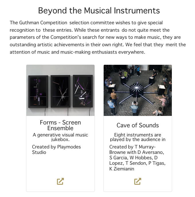 NIMEコミュニティからは、「The 2021 Guthman Musical Instrument Competition Finalists have been announced!」というニュースが届いた。 この Georgia Institute of Technology という大学ではずっと昔から、毎年「新しい楽器のコンテスト」というのをやっているのである。 今年のファイナリストなのかどうか、 Forms - Screen Ensemble という作品プロジェクトと、 Cave of Sounds という作品プロジェクトが大々的に紹介されていたが、まぁ中身はけっこうデジャヴものだった。