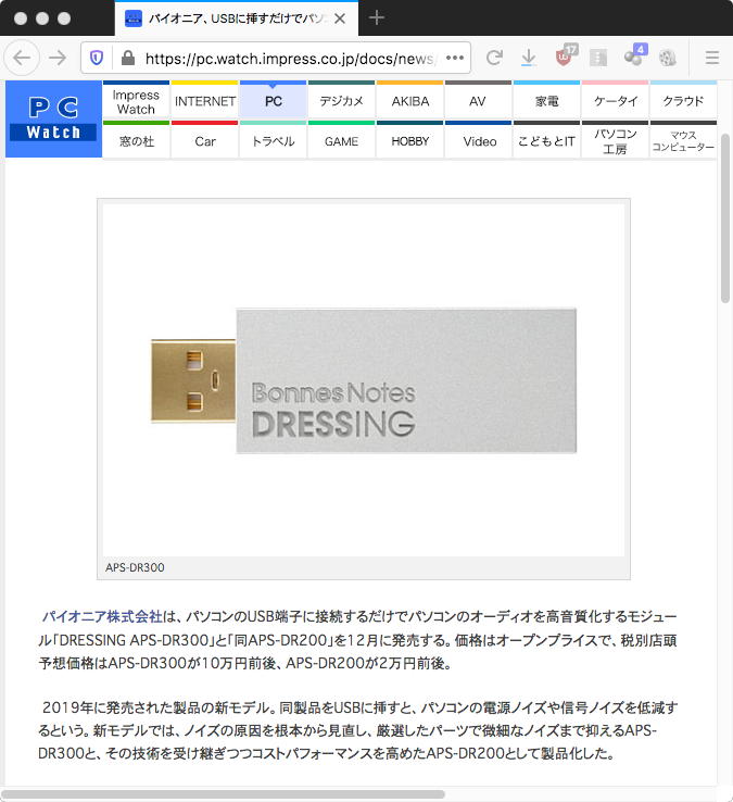 今日は午後に某会議、そして4-5限には、気合いを入れて メディア数理造形演習 に向かう日である。 朝イチで届いていたニュースは、「パイオニア、USBに挿すだけでパソコンの音質が上がるモジュール。10万円」という製品だった。 5ちゃんねるの反応は 「プラシーボ効果」・「技術があっても倒れる理由がここに」・「誰が買うねん」・「オカルトグッズ」・「オーディオイヤホン厨狂喜」・「これは怪しいぜ」・「燃費が良くなるシールみたいなものか」・「パイオニアがこんなものに手を出すなんて、俺は悲しいよ」・「落ちぶれたもんだなぁ」・「発電所によって流れてくる電気が違うから音が変わるんだよね」・「ピュア界では常識」・「すっかりオカルトメーカー」・「金の余ってる年寄りがカスタマー」・「お布施だぞ。信心が試されてる」・「先進的を名乗るなら直接脳に音を飛ばすくらいやってくれ」・「詐欺商品を出すまでに落ちぶれたか」・「社会に迷惑かけるなよ」 などと盛り上がっていた。