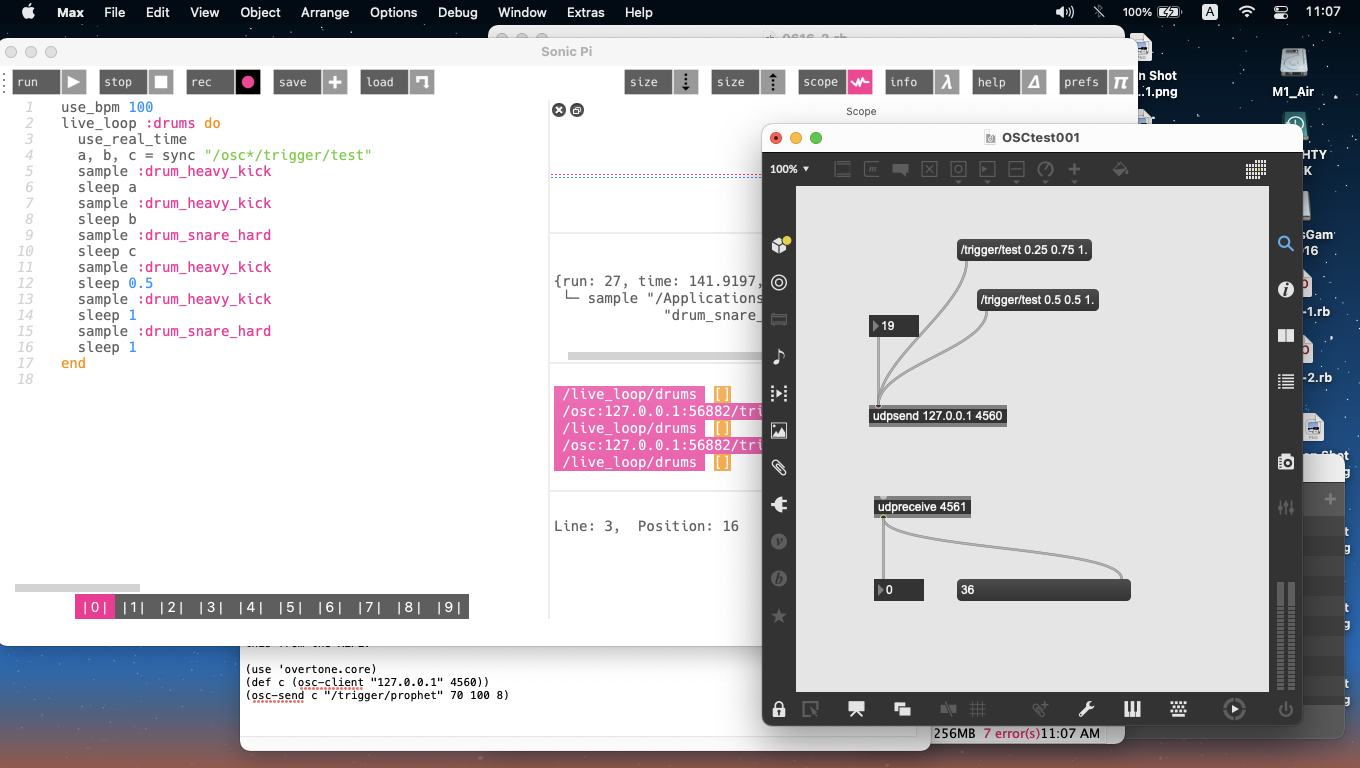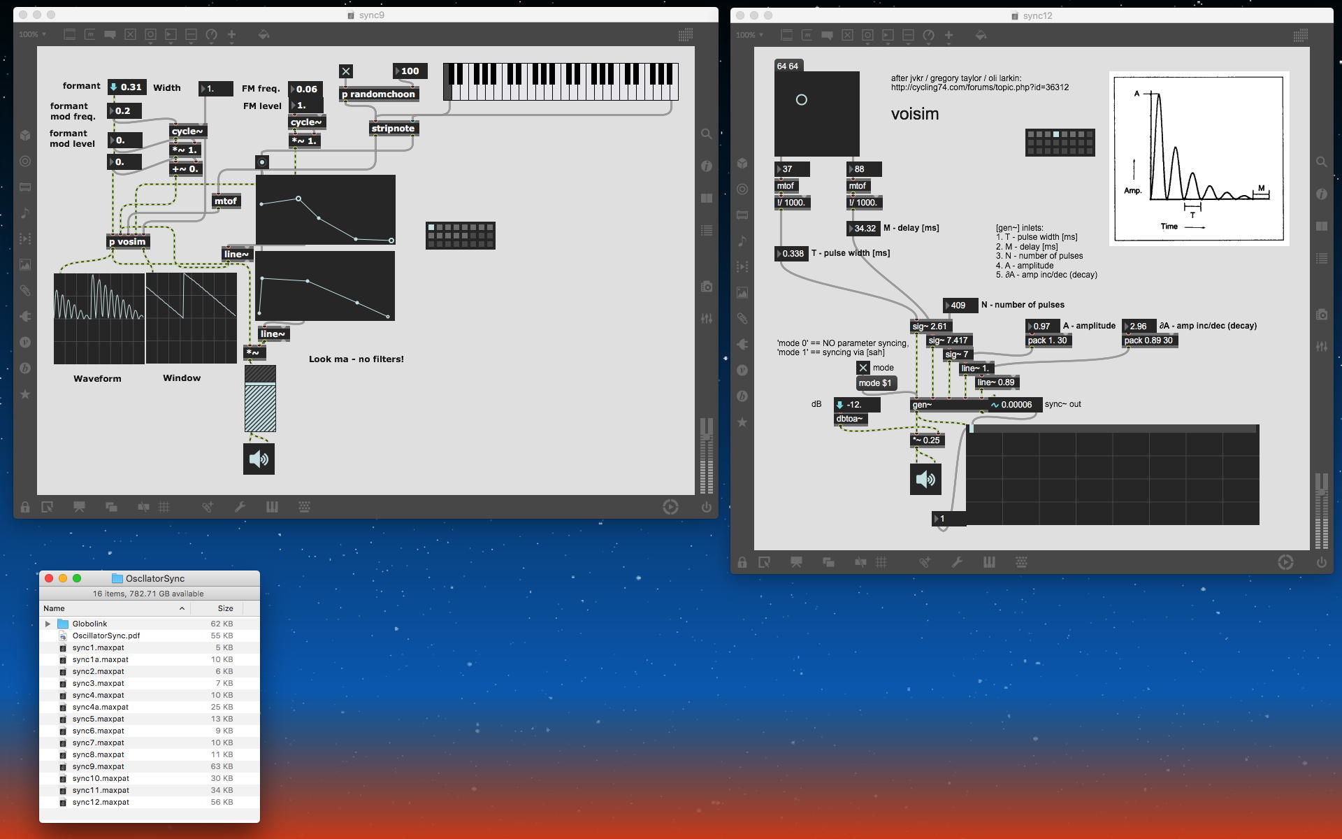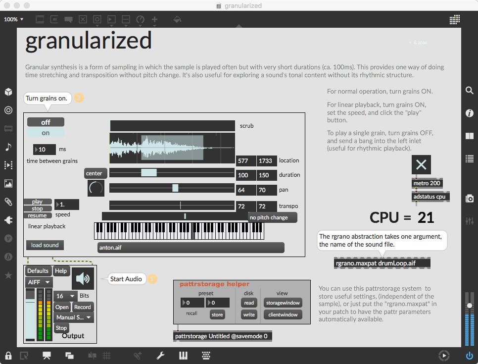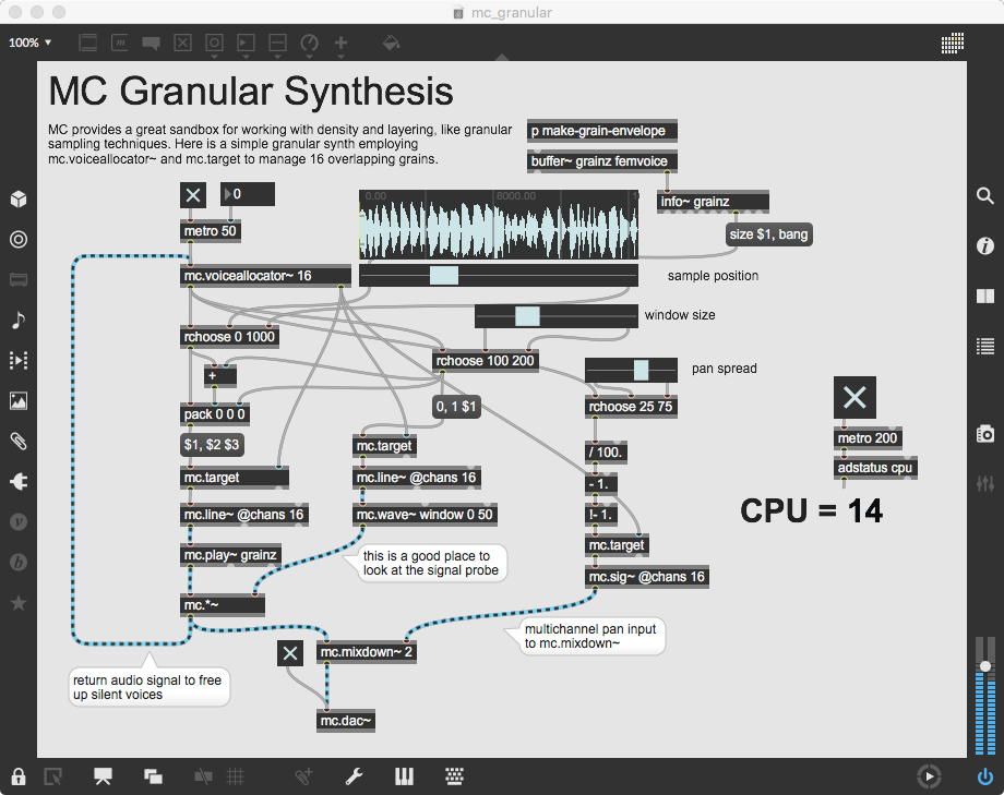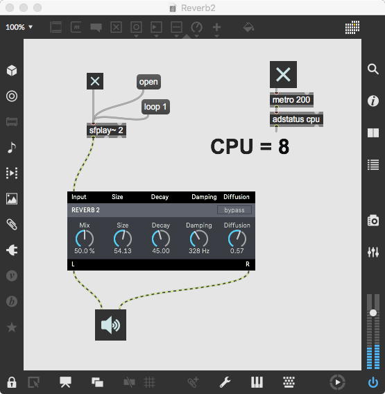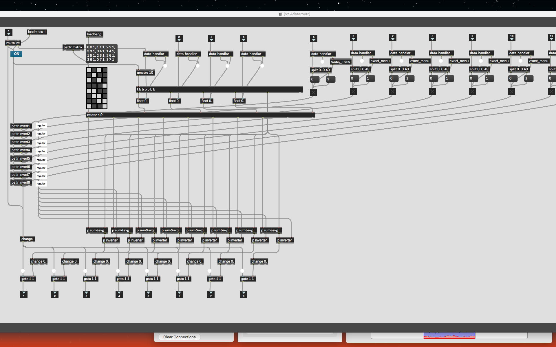 ゼミの日である。 いつものように早起きして研究室に出てきて、昨日の試験的Max8パッチにCycling'74のExamplesから発掘したモジュールを追加して、 このように、 ゼミでは日崎くんや王さんの今後の発表のために簡単なDemo Performanceの形で紹介した。 そのYouTube記録は これ と これ である。 王さんは「毎週1曲」という作曲に挑戦を続けている。 清水さんも、なんとか環境は回復して、ちょっと一安心という経過を報告してくれた。 そして、日崎くんも進捗をデモ報告して、さらに吉田さんと進めている例の問題に皆んなで悩んで、ぼちぼち進んだ。