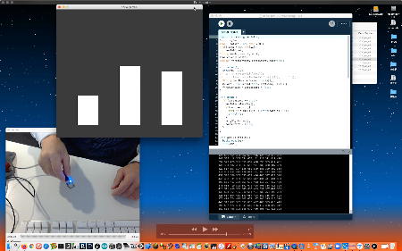 文字列のParsingというのはけっこう大変だよなぁ・・・と思いつつ、まずはProcessingのReferencesから このページ あたりを起点に試行錯誤の実験を繰り返して、細かいところになると「実はProcessingとはJava」ということで、JavaのReferencesの このページ などに飛ばされて、久しぶりにこの手の実験に没頭した。 そして夕方には上のように、無事にMax8のパッチと同等に、 こんな動作 のProcessingスケッチが完成した。 Processing IDEの下段にシリアル入力から抽出・変換した11ポートのA/D入力データ(0-1023)も表示しているが、スペースキーによって、この表示のON/OFFを出来るようにした。 Arduinoからは毎秒20サンプル(×11データ)が届いているのだが、見た感じではどちらも同等で、データ落ちは無さそうである。 春休みのリハビリとしては、まずまずの実験となった。(^_^)