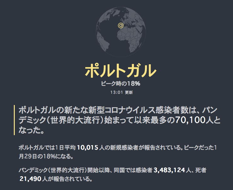 これはもしかすると、 あの ブルガリアの黒海沿岸の保養地で行われていた(現在でも案内メイルが届く)、「会議屋」(香港?にいるロシア人?)の設定するような会議群の可能性がプンプンする。 そして何より、「コロナ 状況 ポルトガル」で検索すると、以下のような現地の状況が判明した。 昨今の会議/学会に関するWebページで書かれている「コロナの状況によっては・・・」みたいな事は微塵も書かれていない(なんとしても現地開催!!)ものの、これでは到底、7月にポルトガルに出張できるとはとても思えない。