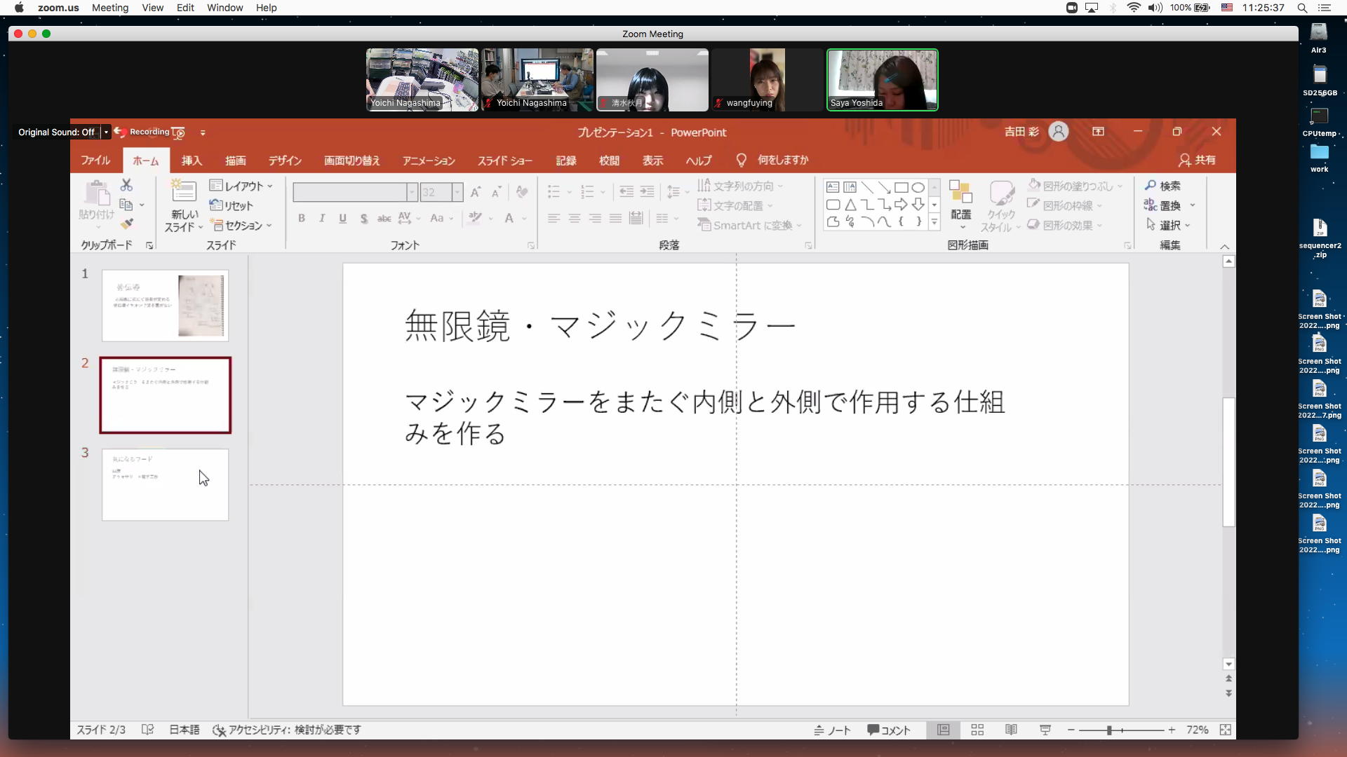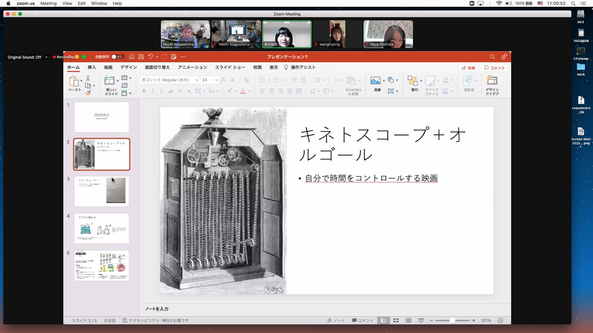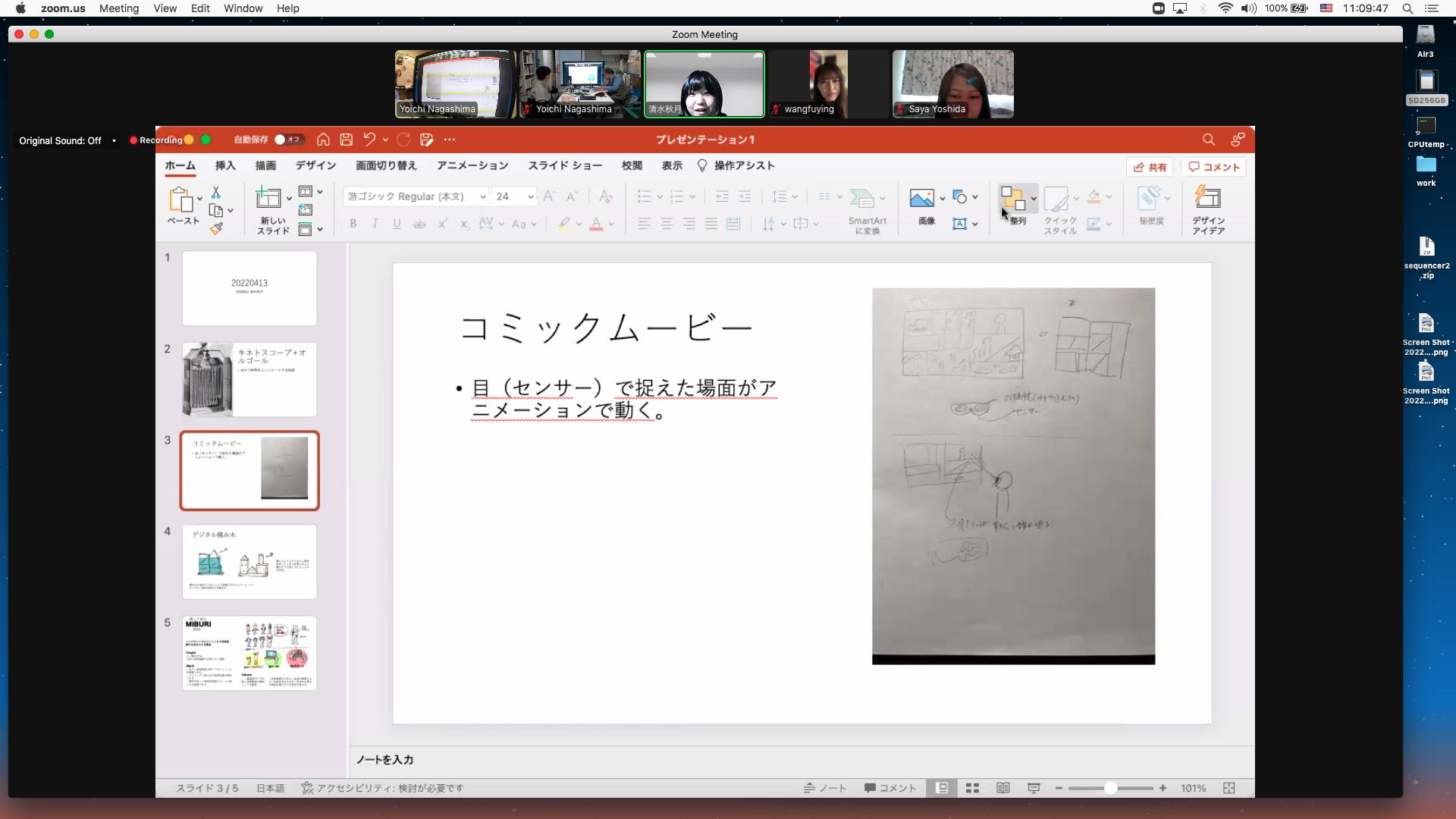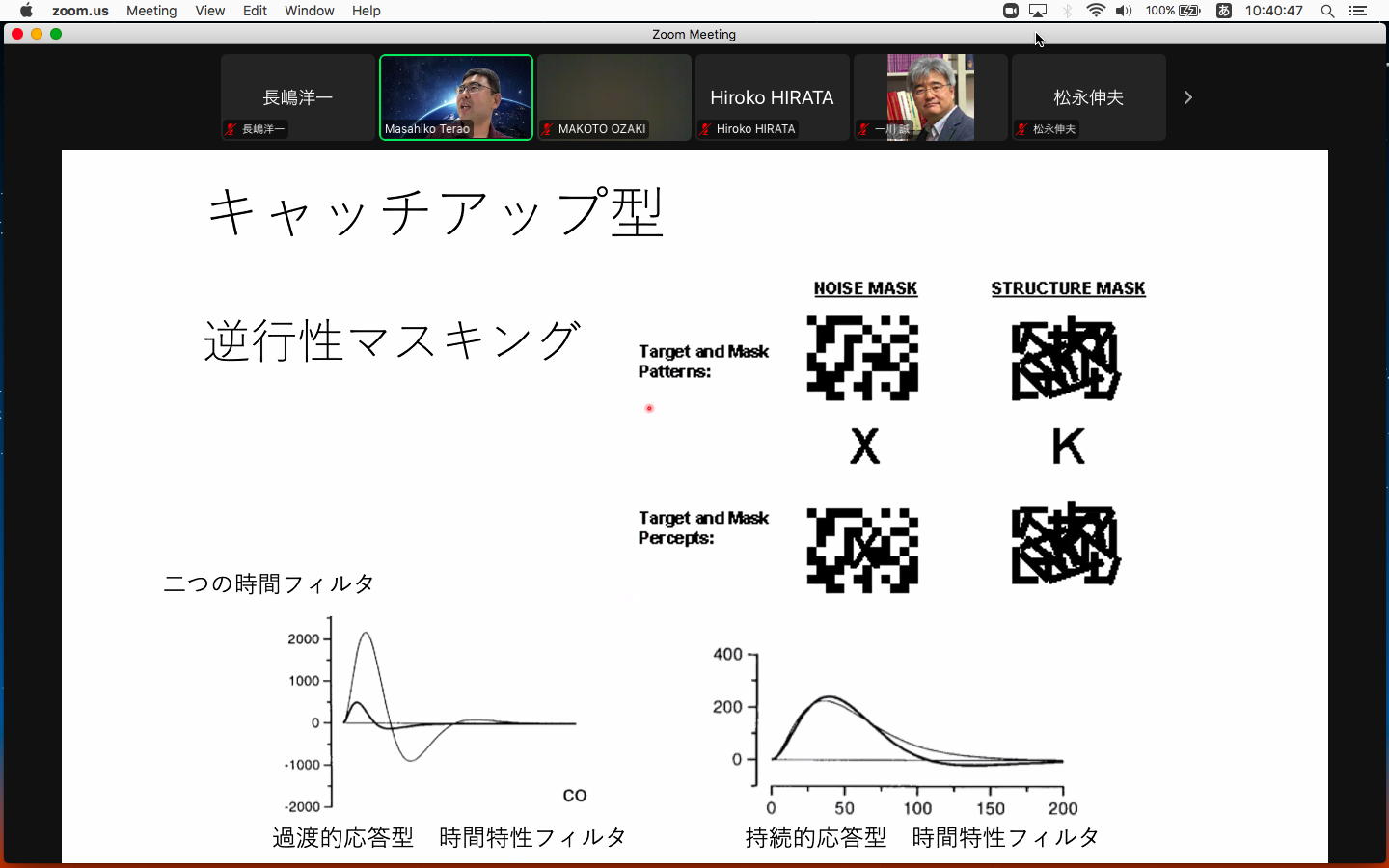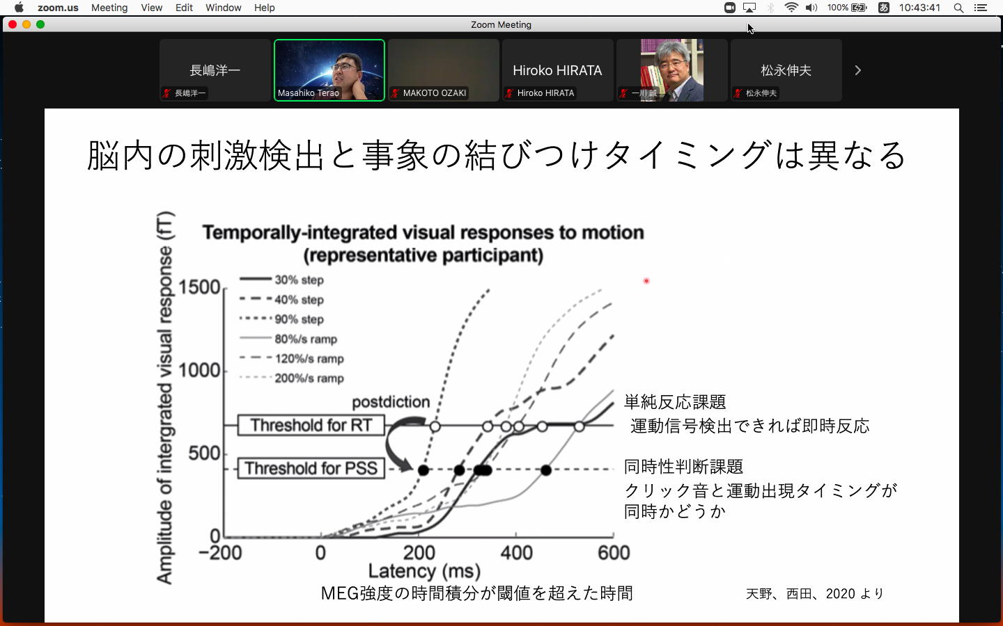 また、グラフィック系の日比谷先生とかわ先生への依頼として、学会発表論文に入れるイラストとして、絵心のある学生に手伝って欲しい・・・というメイルを出した。 We-mode認知の紹介のところで使いたい「両引き鋸」のイメージスケッチであるが、果たして協力してくれる学生が現れるかどうか、期待して待つことにした。 そして2限のゼミZOOMミーティングは、1106にやってきた東本クンを含む、以下のような4人で開催された。 ちなみに(リンク切れするが)全73分の記録動画は これ である。 皆んなそれぞれの近況と元気な顔を交換し、それぞれのテーマなどを提供し議論して、いよいよ新学期のゼミがスタートした。