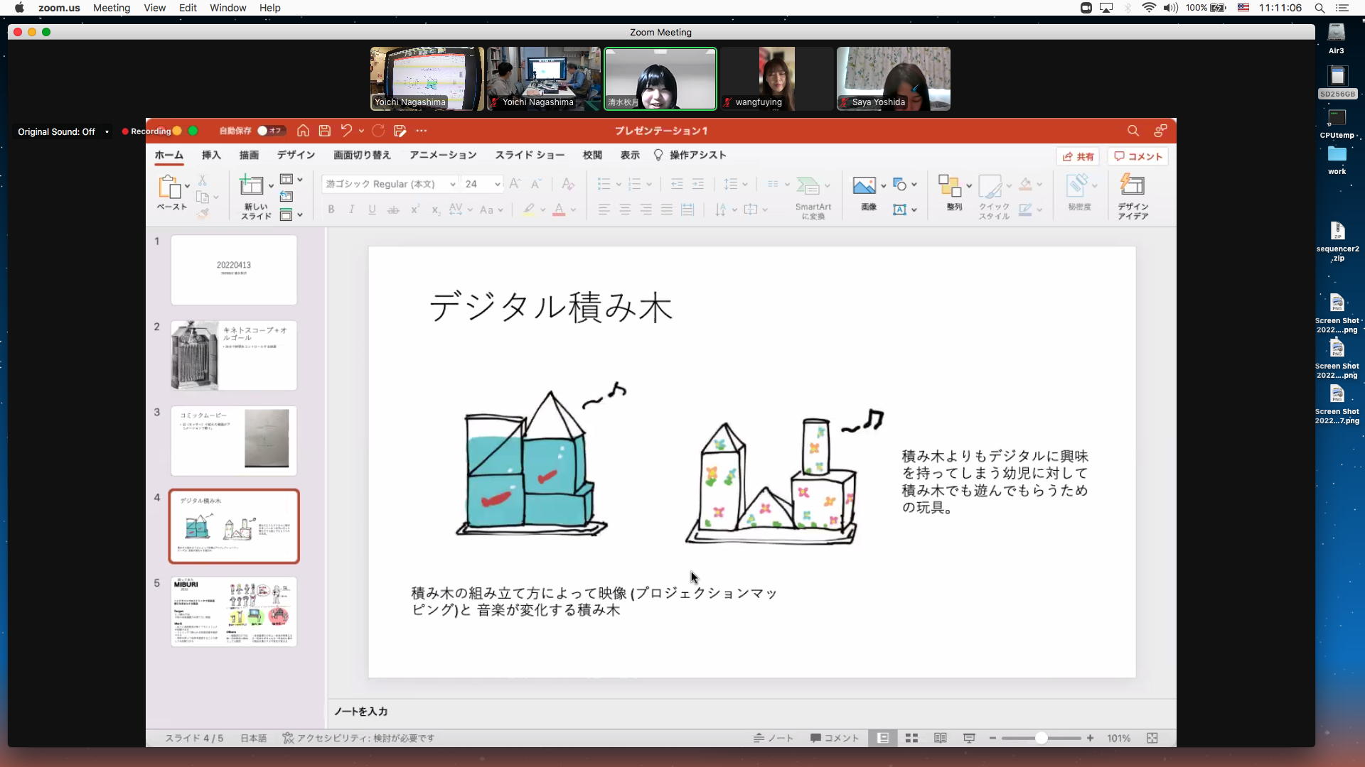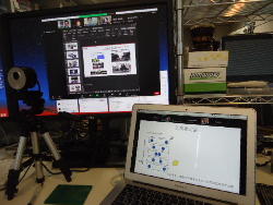 そして1-2限の最終合評は このように 進んだ。 新インターフェースを作った 日崎くん と 佐々木くん のデモ・プレゼン(パフォーマンス)も素晴らしかった。 そして昼休みから3限にかけて、「基礎演習E」の32人のプレゼンデータをダウンロードして、無駄にデカいパワポのデータをKeynoteにimportしてPDFにexportすると、たいていのデータサイズが20分の1ぐらいになった。 やはり、悪名高いWordやExcelほどでないにしても、Powerpointも相当に邪悪なソフトなのだと痛感した。