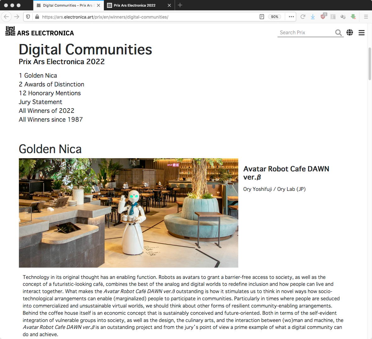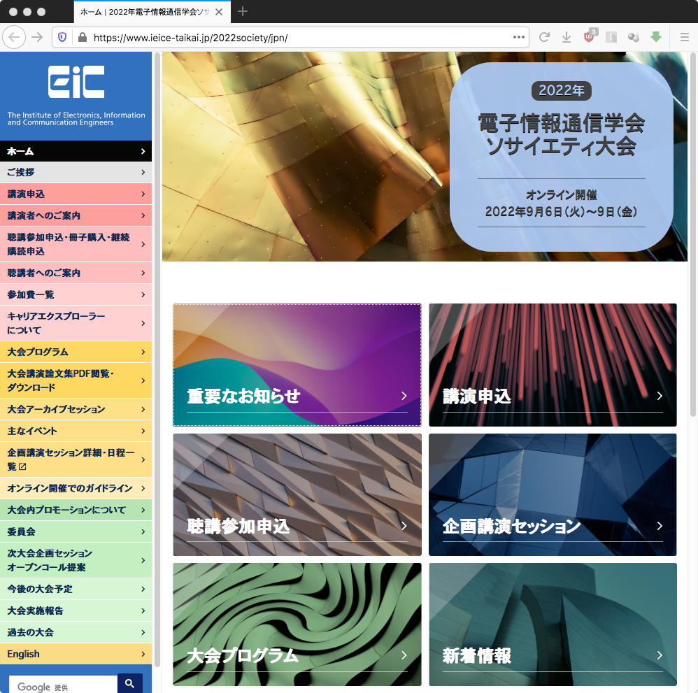 そして、当初は「東北大学」で開催というのでチェックを続けていた(ずっと「おいおい公開」とされていた)、9月の電子情報通信学会ソサエティ大会を検索してみると、なんと上のように東北大学の名前が消えて「オンライン」となっていた。 こうなると、ソサエティ大会とほぼ同時期なので候補から消えていた アルスエレクトロニカ2022 (リンツ、オーストリア) ★ だけが、唯一の可能性として残ってきた。 いつ消えるかもしれない細い細い可能性であるが、しばらくはオーストリアのCOVID-19状況をウォッチしてみよう。
