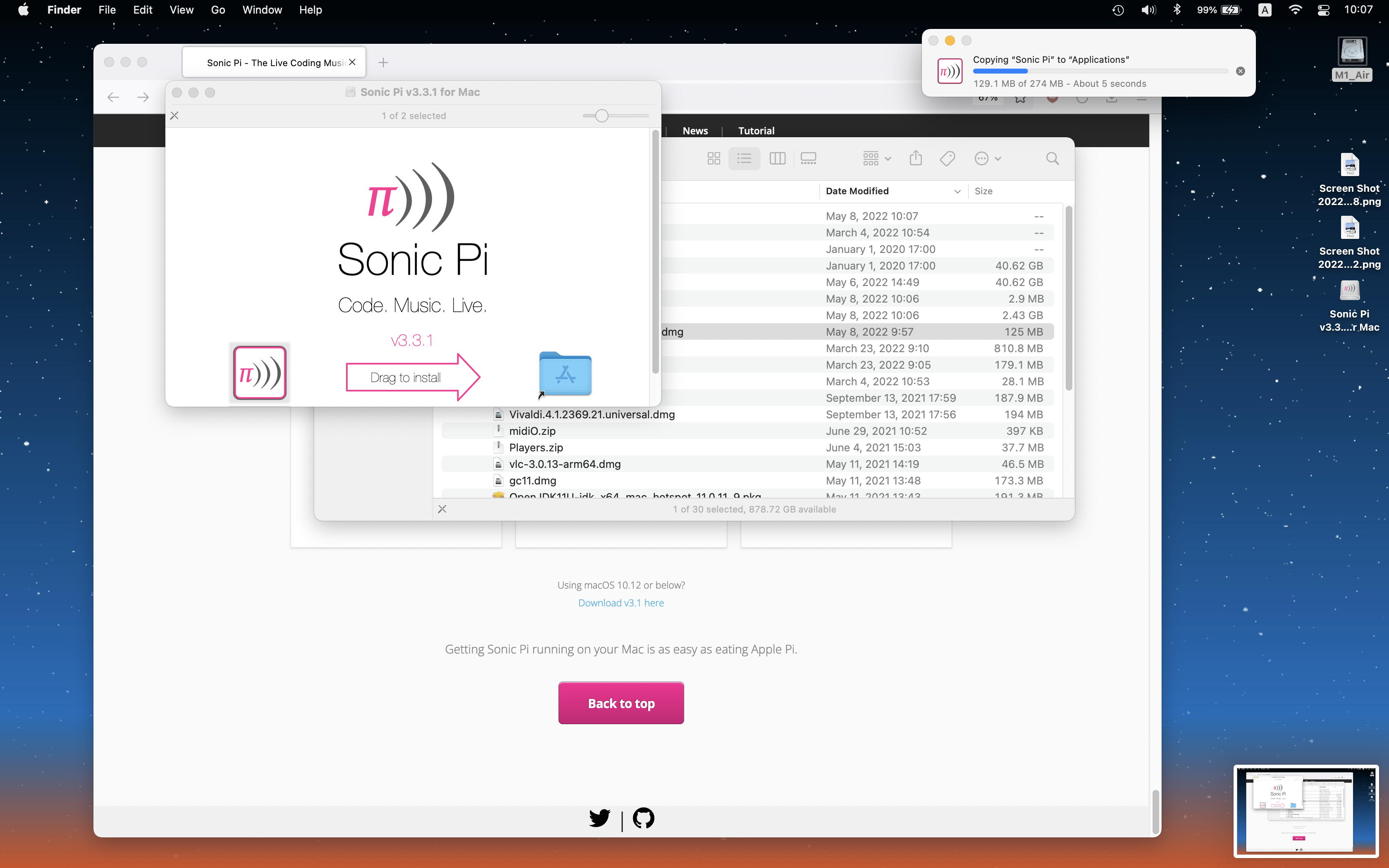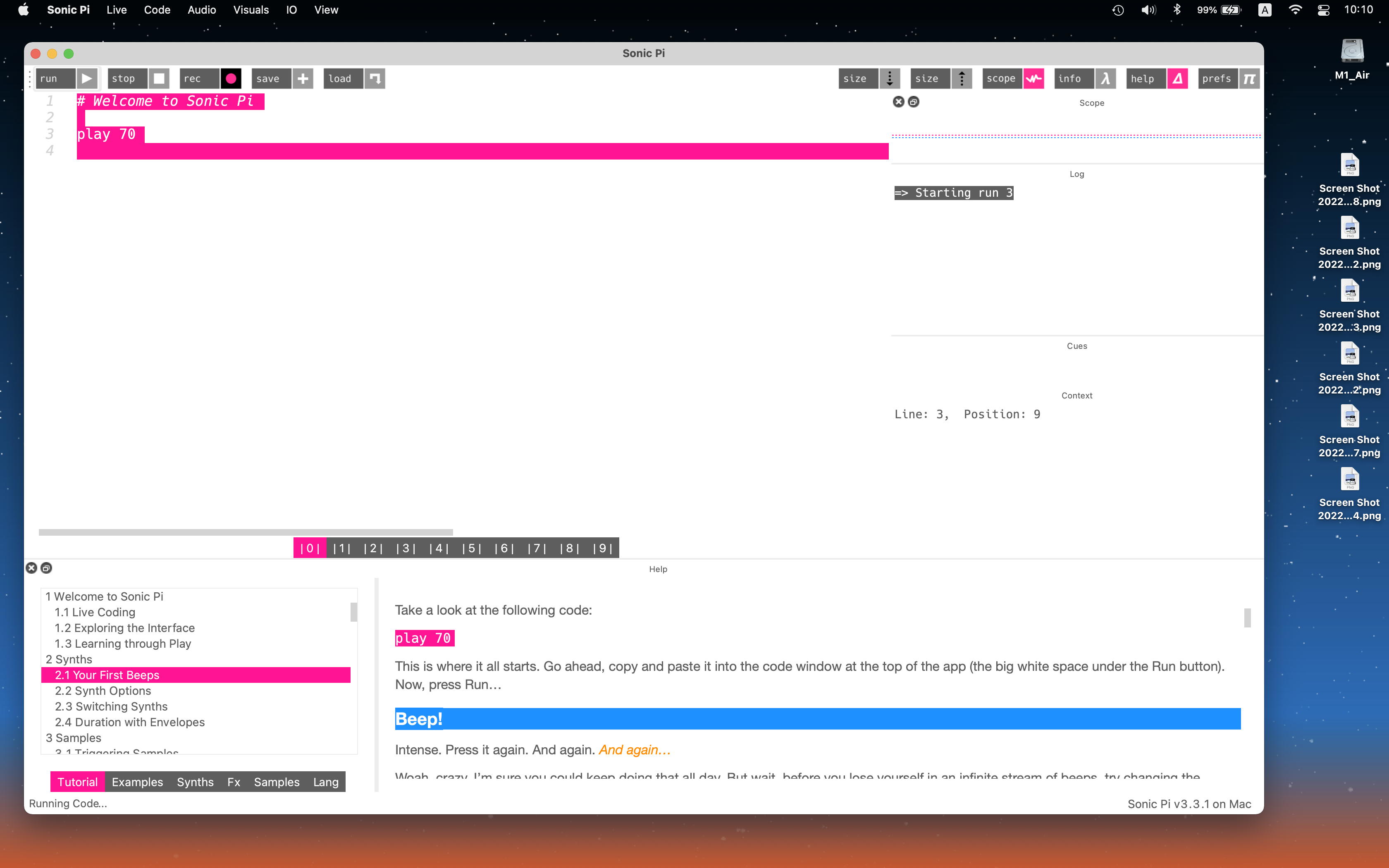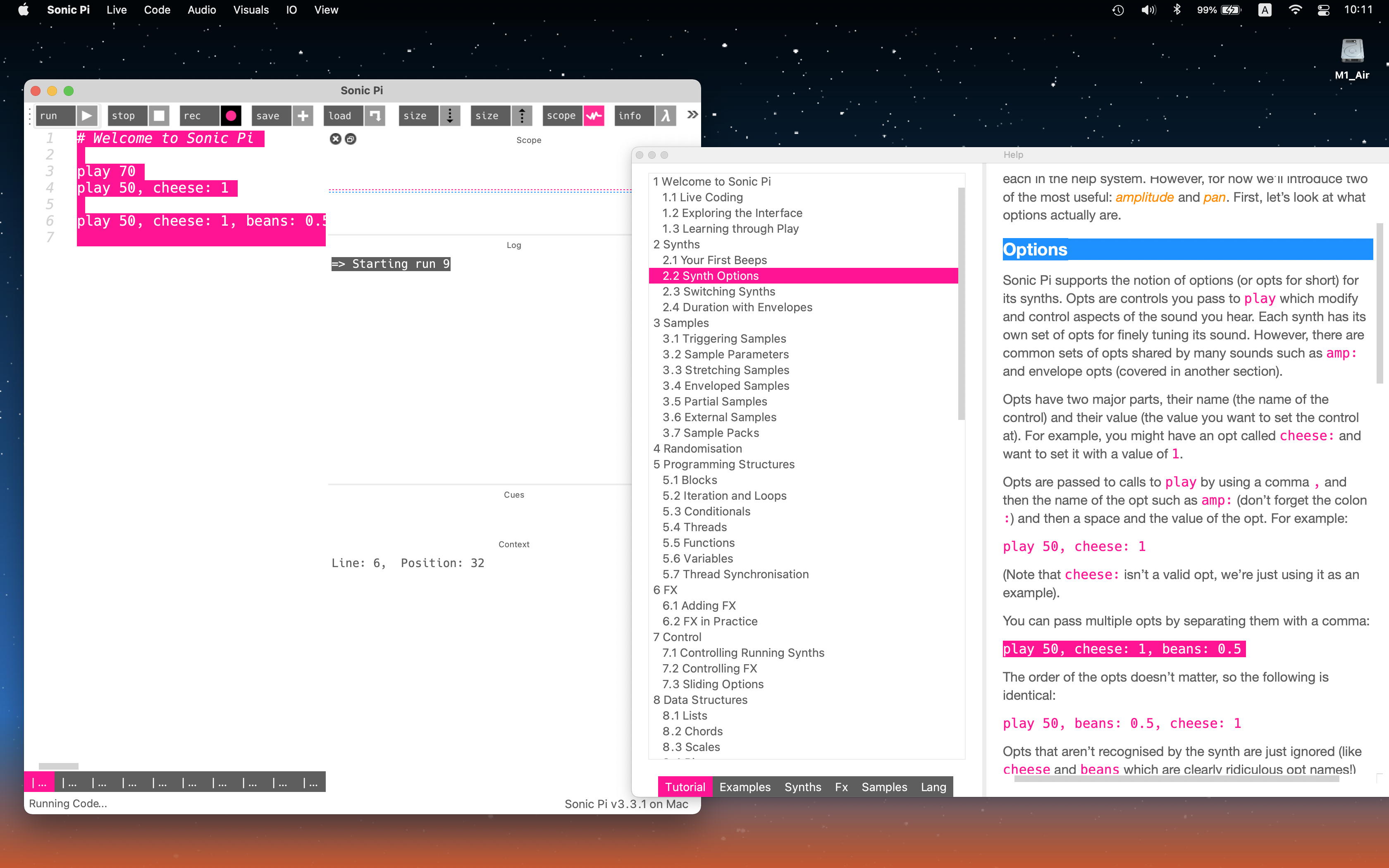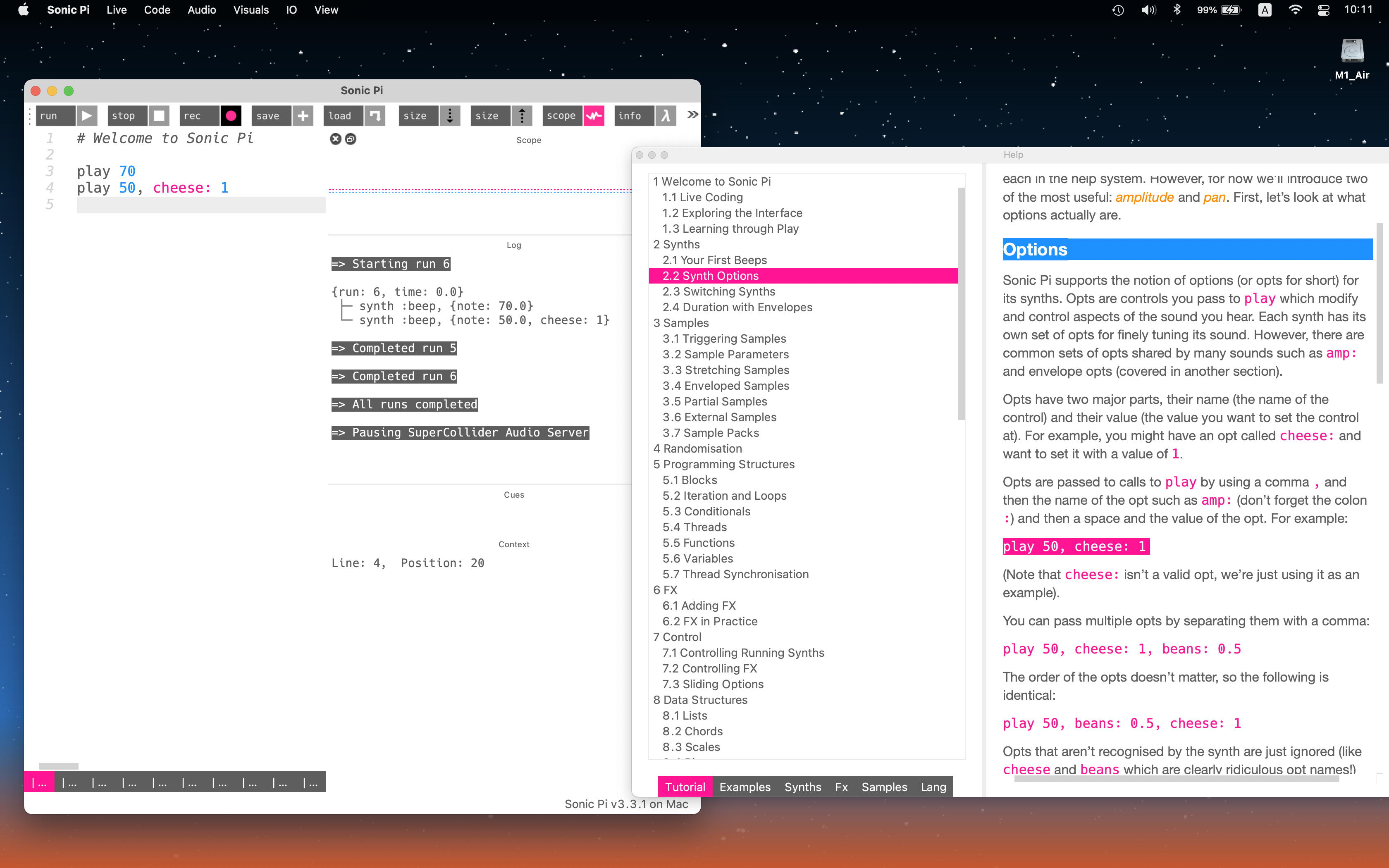 怒涛の学期末が終われば、もう東北大での電子情報通信学会・応用音響研究会での発表に向けた準備となる。 だいぶ前に学会に提出していた 論文 は完全に忘却の彼方にあって、慌ててプリントして思い出しに努めた。 Max8とSuperColliderとProcessingとSonic-Piをデモするためには、いつものMacBookAir(OSX10.11.6)ではSonic-Piが走らない(;_;)ので、久しぶりにM1MacBookAirを出してきたのだが、どうもProcessingでminimのライブラリのサンプルデータへのpathが通っていないトラブルに遭遇した。 過去のシステムからアプリ一式をHDD経由でコピーしたのが敗因のようで、いったんProcessing環境を消して新たにインストールする必要があるらしい。 しかしその手間が面倒だったので、Sonic-Piは画面だけスクリーンショットで紹介することにして、いつものMacBookAir(11インチ)を持参することにした。 Mozziの話題も書いていたことも発見して、慌てて荷物にデモ用のMozzi一式(ArduinoUNOのシステムでなくて、ArduinoNanoで作った以下のシステム)を追加した。