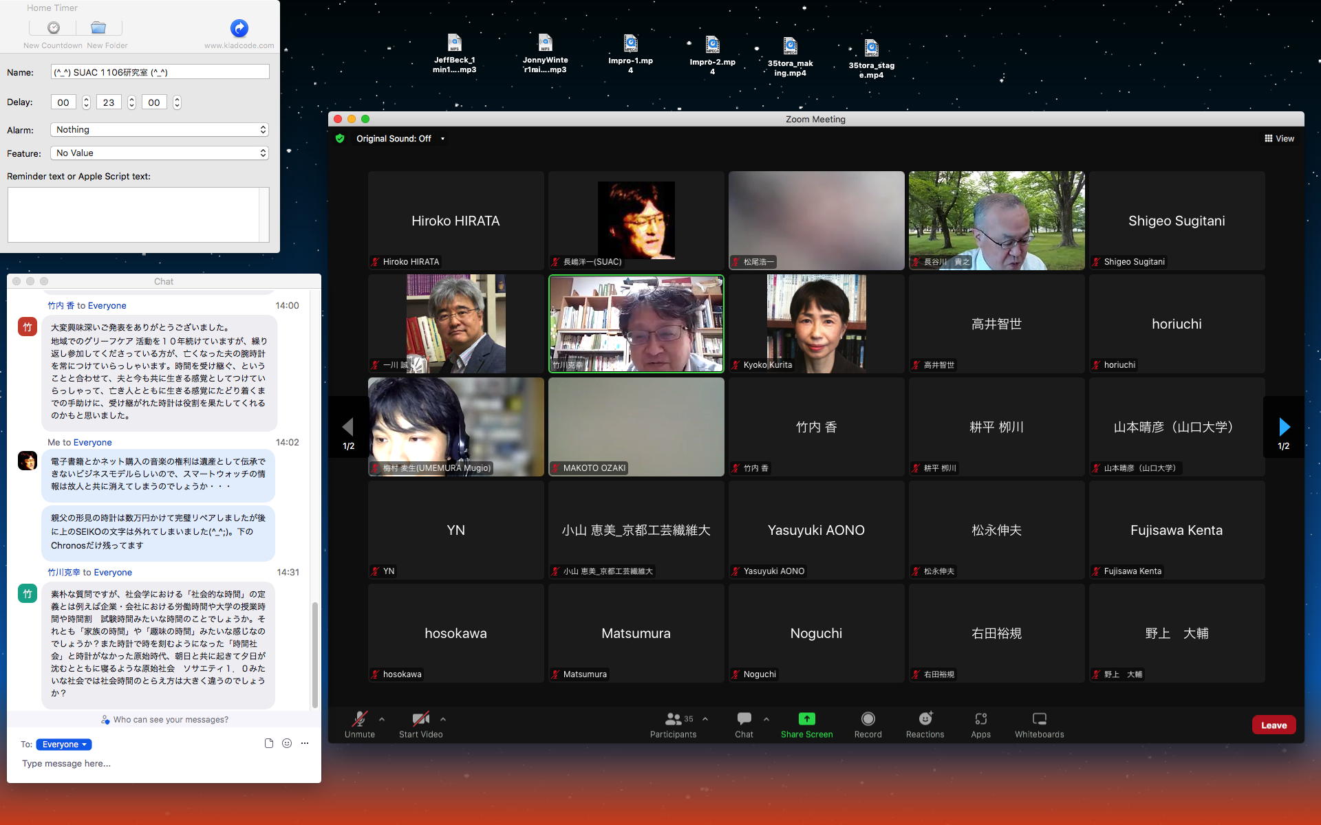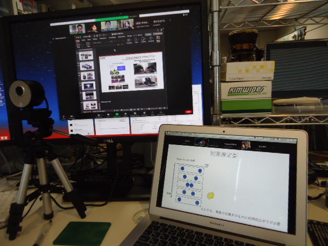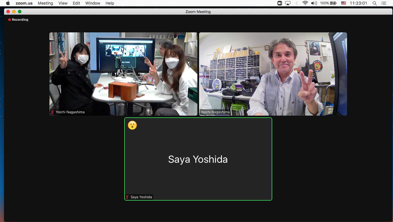 COVID-19対策でちょっと前まで「教員研究室の人数上限は教員を入れて3人」というSUACルールになっていたが、これが先週から6人に解禁となった今日の2限には、東本クンが欠席ということで1106には吉田さんだけがやってきた。 そしてZOOMの王さんと清水さんとが加わって、上のように中身の濃いゼミZOOMが進んだ。 ちなみに(リンク切れするが)全65分の記録動画は これ である。
