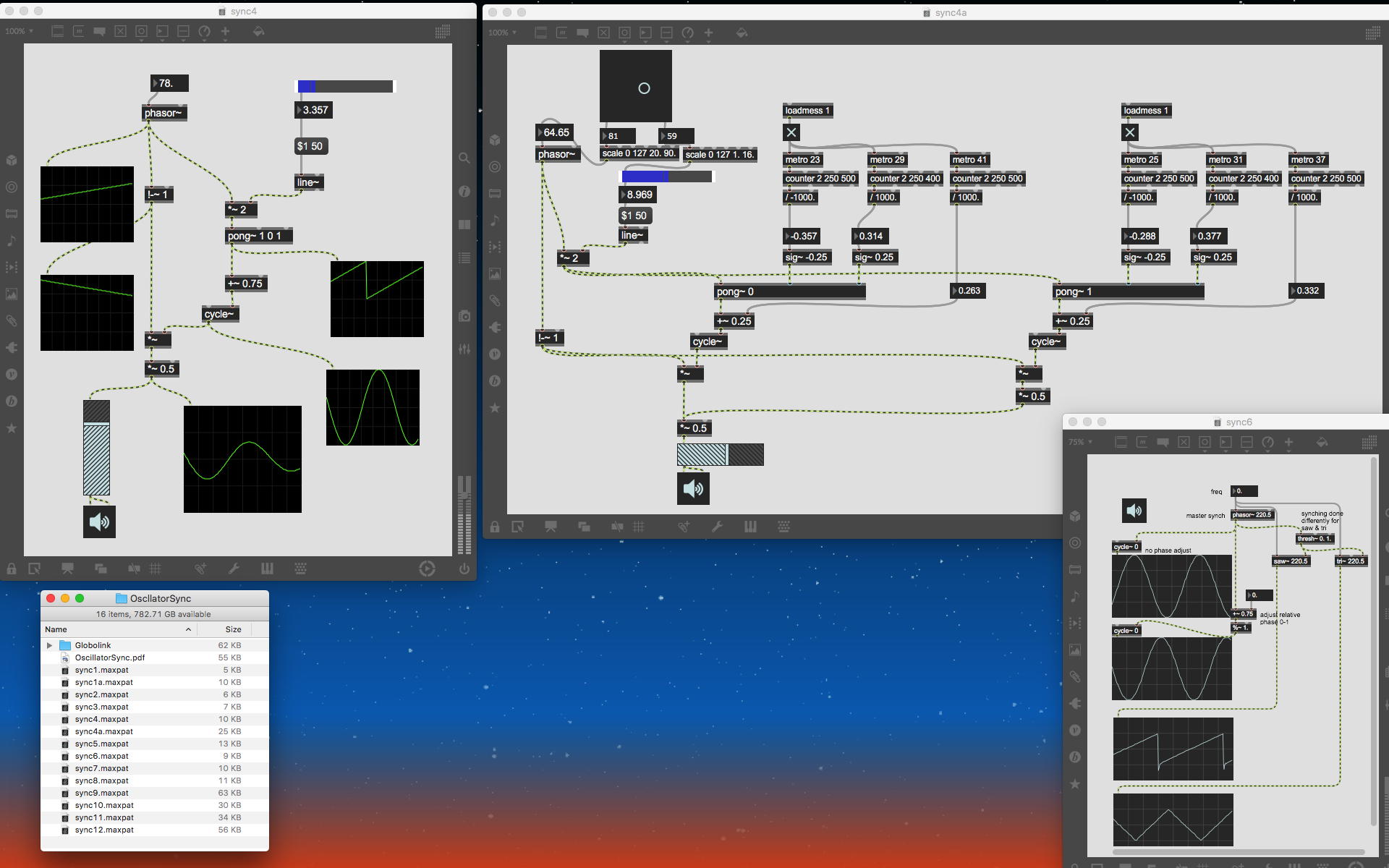 そして午後に1時間ほど、この新学期にゼミで発掘したばかりのOscillator Syncを使ってデモ用の簡単な音源パッチを作ってみたが、7チャンネルのうちたった3チャンネルのセンサでも十分に面白いサウンド体験(音響を自分の両手で生み出す楽しさ)を実感できた。 これはさっそく、明日の日崎くんと王さんに、そして明後日のゼミで皆んなに紹介していくことにしよう。(^_^)