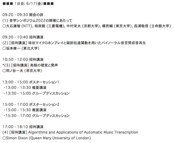 - 日本音楽知覚認知学会春季研究発表会 6月4-5日 立命館大学びわこ・くさつキャンパス(BKC) ★