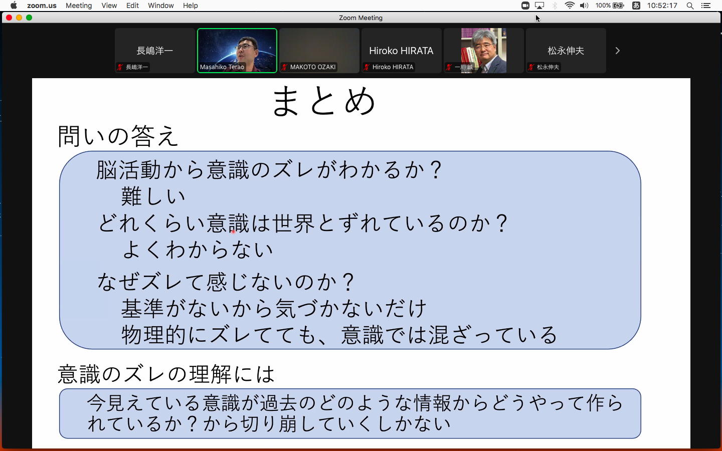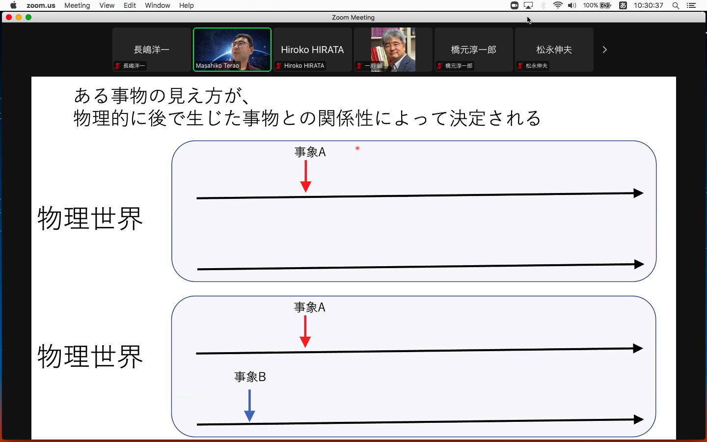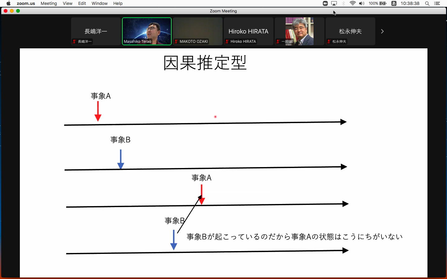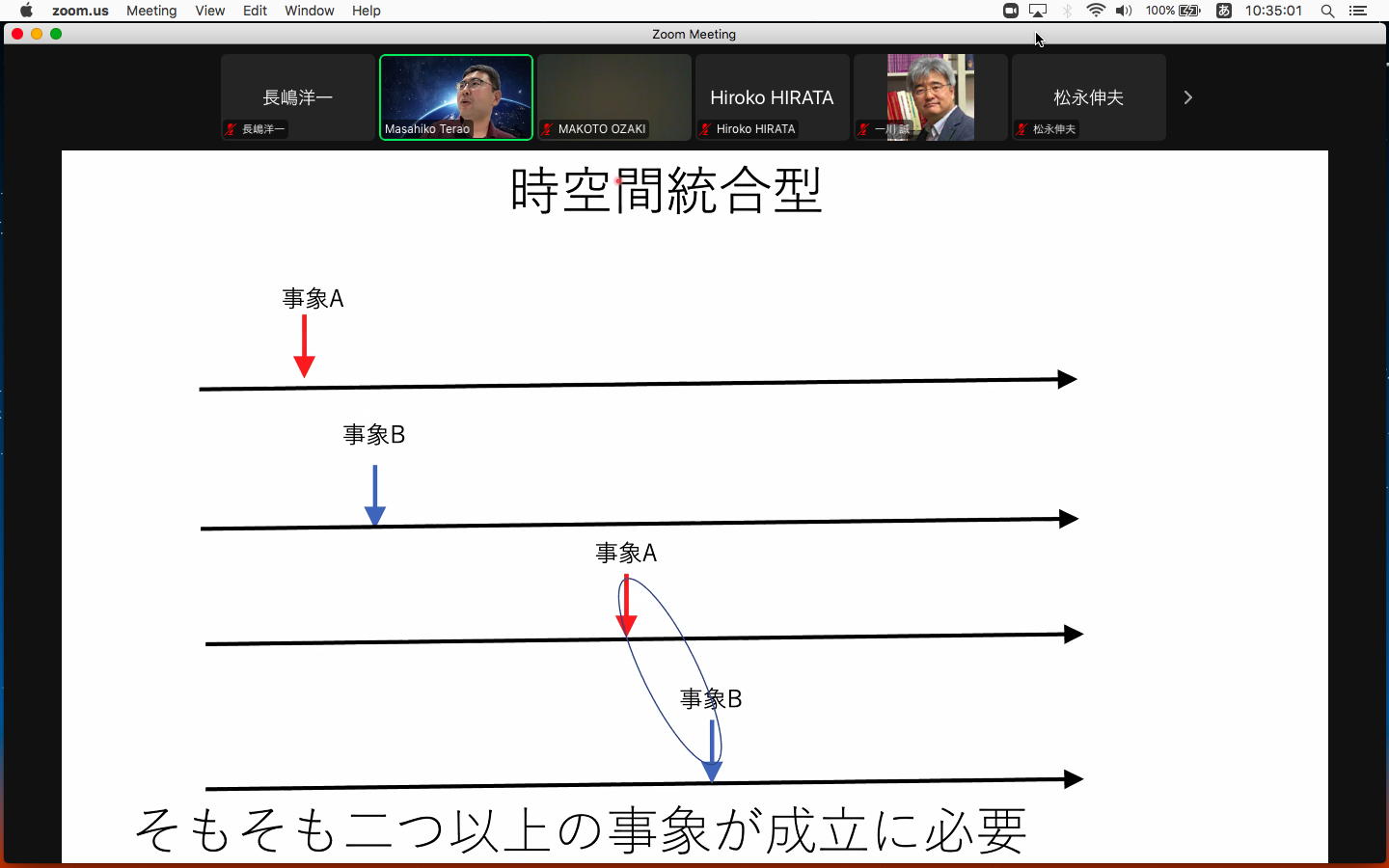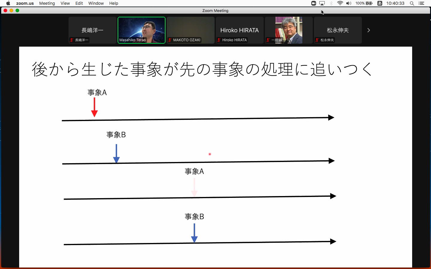 ゼミの日である。 今日は1106には清水さんと吉田さんが来る・・・というローテーションだったが、東本クンから「パソコン不調でZOOMが切れそうなので1106に行きたい」とのSOSメイルが届いたので、特例として受け入れて4人となり、以下のようにZOOMは北京の王さんだけとなった。 ちなみに(リンク切れするが)全73分の記録動画は これ である。