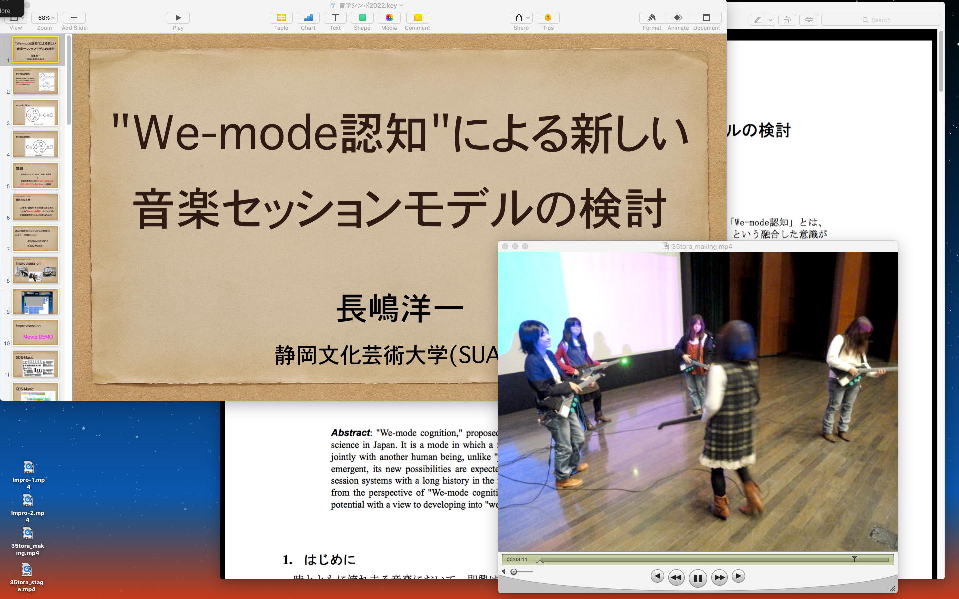 - 音学シンポジウム 6月17-18日 オンライン 「"We-mode認知"による新しい音楽セッションモデルの検討」