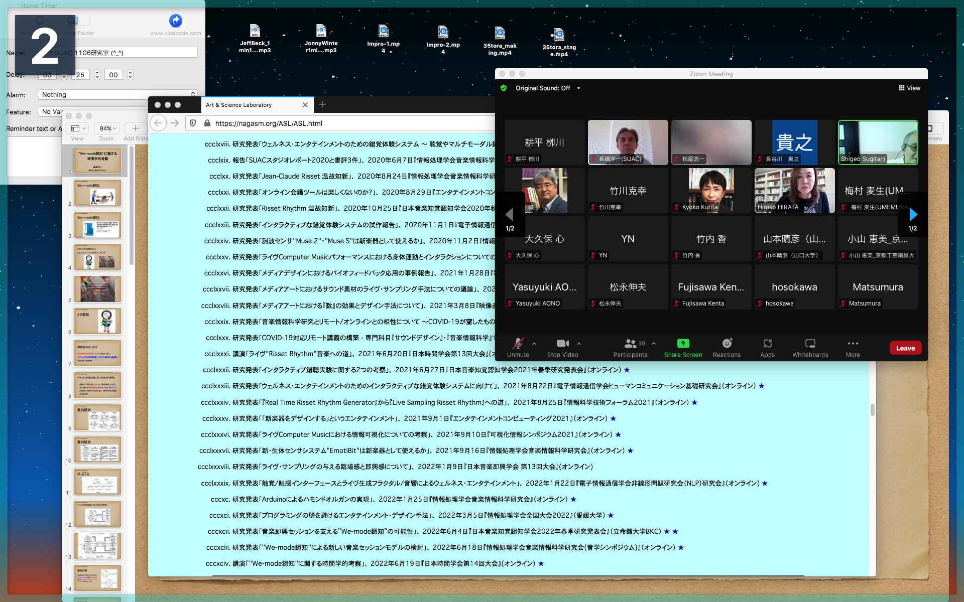 エアポケットのように何も予定の入らない(といっても朝イチで眼科通院して薬を追加処方してもらってきた(;_;))木曜日である。 明日の午前には「サウンドデザイン」・「音楽情報科学」の初日があり、午後の「基礎演習E」を欠席して昼過ぎから今週末は関西に出かける予定があるので、何となく「旅行前日」のような浮ついたテンションがわずかに漂っている。 台風1号もなんとか関西直撃もないまま東方海上に去りつつあるので助かった。 辻下先生・照岡さん・鈴木先生と共同で提案したオーガナイズドセッションが採択されて、8月には札幌でのLIFE2022に発表参加する予定が確定したが、海外はさすがにちょっと無理っぽいということで、この2022年度の前期あたりには国内での学会参加として、以下のような感じのメニューが並ぶこととなった。すでに発表申し込みが確定していたのは「日本時間学会大会」と「音学シンポジウム」であり、いずれもオンラインでほぼ同時期に開催されるので、発表希望日としてカブらない日を指定希望することで両方発表を実現できることになった。 ここに加えて、まだ未確定ながら「日本音楽知覚認知学会2022年度春季研究発表会」(立命館大学びわこ・くさつキャンパス(BKC)/ハイブリッド)への参加を「We-mode」ねたの別バージョンで検討中であり、さらに可能性としては「電子情報通信学会教育工学研究会」(7月:室蘭工業大学、9月:広島大学 /ハイブリッド)、さらに詳細はこれから発表される「電子情報通信学会ソサイエティ大会」(9月、東北大学)というのも要チェックの状態にある。 そして今日は、音知学会の発表申込開始日なので、せっかくだからスケルトンを検討した上で、発表申し込みをしてしまおう・・・というのが目標となった。