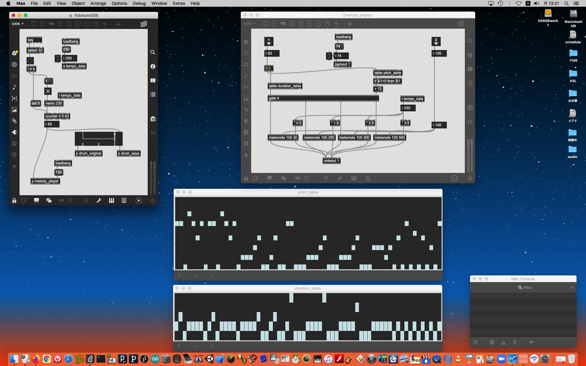午後の清水さんアポでは、先週にMacOSを最新にしたためにトラブルに沈んだ清水さんパソコンのOSダウングレードのためにTimeMachine用に貸し出した1TB HDDが、操作のトラブルのために消えた(認識されない)という上塗りトラブルに対応することになった。 結局、バックアップデータは残念ながら救済されなかったが、認識されなかったHDDは無事に復旧したところまでは進んだ。 こういう異常事態の時に何かをデザインする/制作する、というのはよくないというセオリーに則って、まずは冷静にMacの環境を元にもどすことに専念するため清水さんは帰っていった。 続いて午後には、ゼミ・吉田さんのプロジェクトで二人して頭を抱えつつ頑張って、また少しだけMax8パッチは前進した。 まだまだ「呼び込み君」は強力なのだが、何としても突破したいのだ。