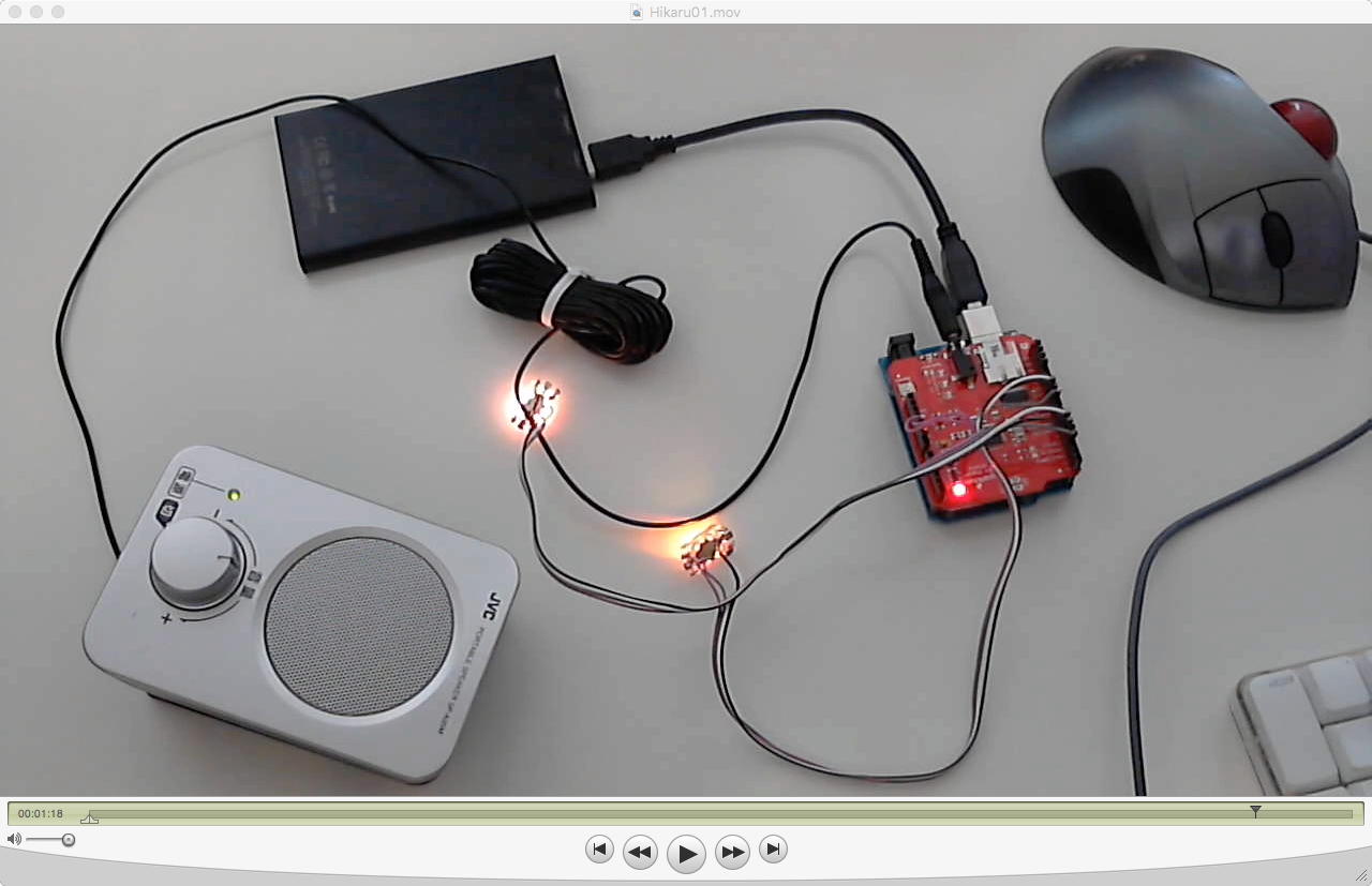 ようやく週末となったが、ルクソールに行ったテンションが残っているので、明日でなく今日のJoyJoyヒトカラを予約していて、午後に帰宅するまでほんの数時間である。 昨日の金曜日は夕方までアポ学生に対応していて、今朝は研究室に出てくると、テーブルの上にはハンダ付け一式がそのまま残っていた。 「基礎演習E」で制作を支援している鈴木ひかるさんのシステムを作りかけた途中だったが、なんと部品棚の引き出しに同じ外形でも見るからにチップの大きさが異なる2種類の高輝度3色LEDが混在していたのに気付かず(^_^;)、ぬいぐるみの右目と左目になるのにアンバランスはマズい・・・と片方を取り替える作業からスタートした。 そして、サンプルとして仮に作ってもらった「お帰り」という言葉のmp3ファイルが、何故かmp3再生シールドに入れるマイクロSDカードに書き込めなかったトラブルも変換アダプタを交換して解決し、まだまだ追加する部品はあるものの、とりあえず「リセットすると"お帰り"と発声して、あとは2つの高輝度3色LEDがそれぞれ色彩変化する」というバージョンが出来た。 YouTubeにも上げたが、 こんな動作 である。 これを鈴木さんに知らせて、今度の「基礎演習」(中間発表)では、この現物を見せるか、このYouTube動画を見せるか、という打診メイルを出して、まずまず進んだ半日となった。 これなら、気持ちよくヒトカラに出かけられるというものである。
