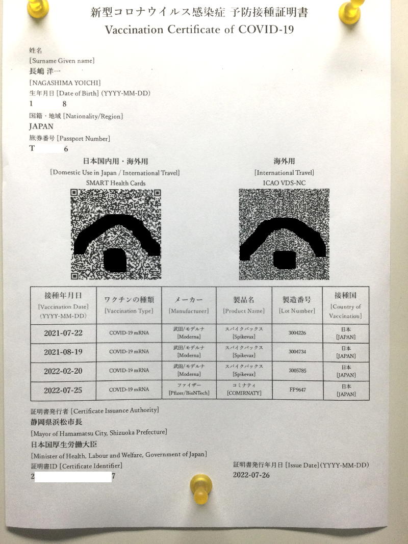 この日記のPart12 の「2022年2月25日(金)」のところには、COVID-19ワクチン3回目接種の「予防接種証明書」があったが、そこから5ヶ月経過して、今週の月曜日に4回目接種をしてWeb申請していた結果が以下のように届いた。 これまで3回はモデルナで、4回目にファイザーとなったが、もう接種箇所の左肩も柔らかくなって完全に影響が消えて、これから1-2週間で最も免疫が強化されるという時期になった。(^_^)