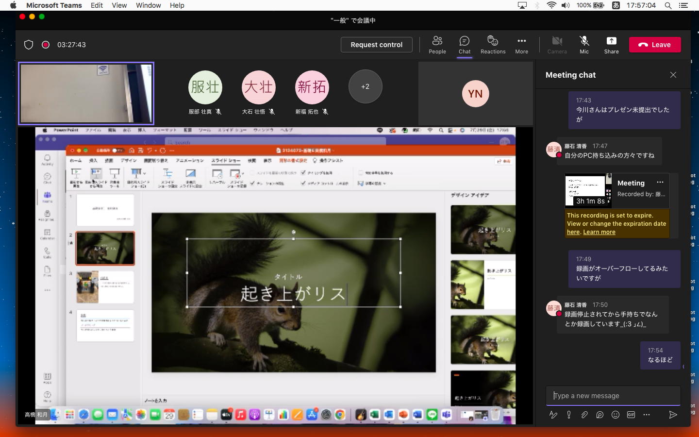そしてリモートで参加した4-5限の「基礎演習E」のうち、前半の様子の一部が上のようになった。 ここまで90分、集中して参加して「休憩時間」となったが、この調子で後半90分もこの集中が続くかどうかは不明である。(^_^;)
