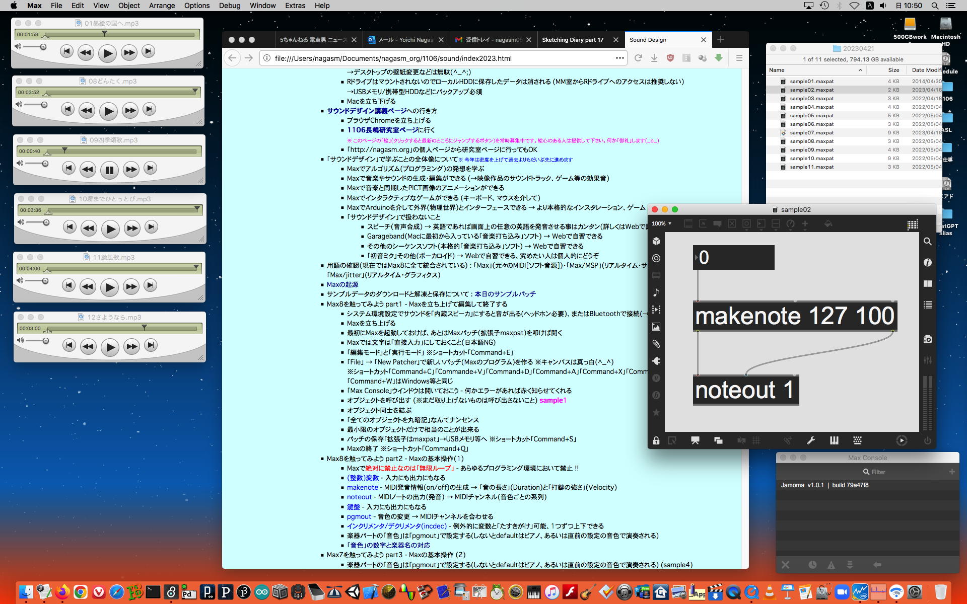 明日の「サウンドデザイン」の教材はだいぶ前に完成していたが、午後に時間があったのでマルチメディア室に行ってロッカーに在庫がある事を確認してきた上で、 USBコントローラ用Maxパッチを作る のページを発掘して来週の教材に追加してみた。 この中身は、その前年の2016年、オーストラリアのブリズベンでの NIME2016 のワークショップで仕入れてきたネタである。 これは、今年初めてのことで、これまで2回生前期の「サウンドデザイン」では扱ってこなかったのだが、最終年の今年はグングン中身を追加している、そのシリーズの第一弾なのだった。 今年は抑えに抑えた成果として受講者が11人と少ないので、全員にUSBコントローラを貸し出せるので、これでいいのだ。(^_^)