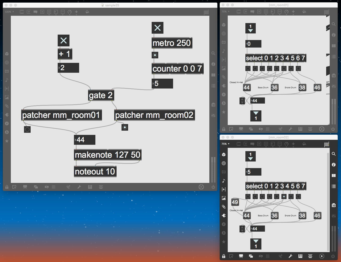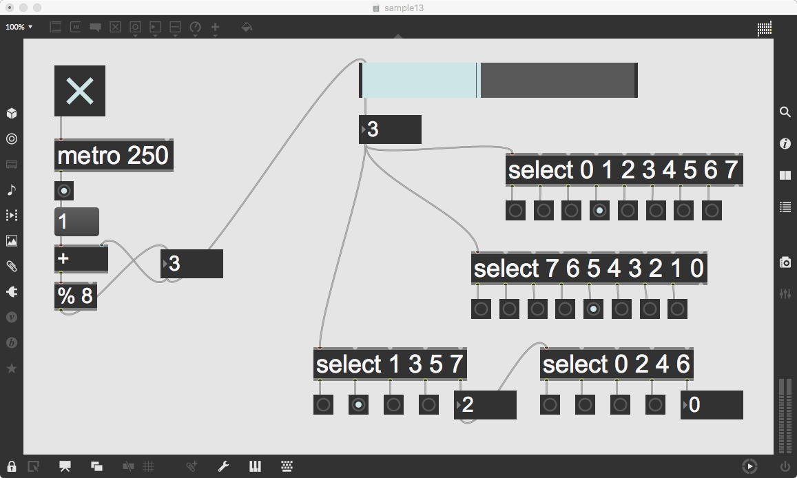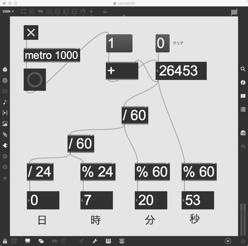 そして2限のゼミは上のように無事に終わって、3限のM2・王さんのアポと進んだが、ここで大きな宿題をもらって終了した。 パーティクルものを使いたい王さんは、先週のアポでProcessingがいいかも・・・と結論付けていたところを、どうしてもjitter/Genでもう少し掘り下げたいということで実験を進めてきていて、これはパッと見には理解が難しかったので、「宿題」と引き受けたのである。 そこで、残りの午後と明日の午前までは、「jitter/GenでParticles」という大テーマに没入することになった。
