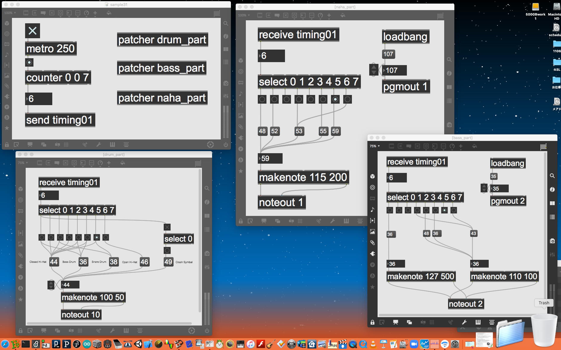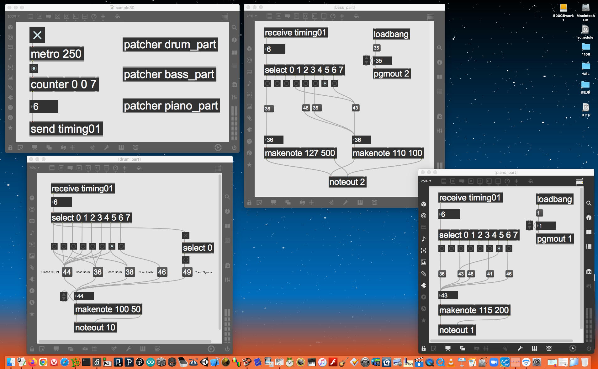 浜松市からCOVID-19ワクチンの6回目の接種券が届いたのでかかりつけ医に電話したところ予約満杯で「6月下旬」と言われたので、上のように来月中旬の集団接種(会場は大学から徒歩圏)の予約を完了したこの日は、明日からの即興キャンプの準備とかあれこれあって、どたばたと過ぎ去った。 1限の「サウンドデザイン」では自動演奏(シーケンサ)のパッチをびしばし進めて、2限の「音楽情報科学」一人特訓ではコード(Triad)についてみっちりと理解を進めた。 名人戦第2局は[藤井6:4渡辺]だったのが[藤井4:6渡辺]とAI判断が移行して面白くなってきたが、午後には明日からの出張準備などもあってあまり見ている余裕は無かった。