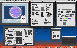 そして思い出したのが、僕の Computer Music作品の記録(YouTube) と並んで置いてある 電子音響音楽作品 のページの「Ogress2」である。 そこに書いているように、この10分52秒の電子音響音楽作品に関しては、ずっと23年間、「この作品をサウンドトラックとした映像作品」を学生に希望しているものの実現されず、1期生の大山さんが描いてくれた上の 静止画 だけが残っている。 そこで、「基礎演習E」の中で、マルチメディア室を暗くして、スクリーンには元になった 草野心平の詩 を出しつつこの作品を鑑賞してもらって、「この世界を表現する静止画作品を生成AIによって作らせる」という課題に思い至った。 これはなかなかチャレンジングであるが、まぁ最終年度に相応しいとも言えそうなので、このセンで検討していくことにした。