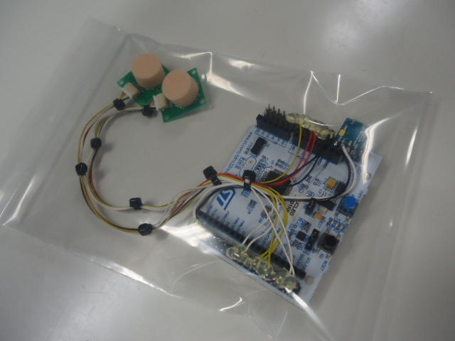 そして午後には、M2の王さんがやってきて このように 新楽器に向けてわずかに進展した。 光センサの数がさりげに16個から20個になっていたが、Arduino Microのポートはアナログ入力が4チャンネルであれば、ディジタル入力として最大20チャンネルまで使えることを確認したので、なんとか最大限ギリギリでOKということになった。 ただし板材の表面の塗装がまだ出来ていなかったので、水曜3限のアポを木曜4限に移動させて(Amazonから塗料が水曜に届いて、晩に塗装をして翌日に乾かして持ってくる作戦)、そこでセンサ取り付けを進めることにした。 せっかくなのでGNDラインと+5Vラインの間に積層セラミックコンデンサ105を何個か適当に入れてみたが、この意味(ライヴ・パフォーマンスにおける危機管理)を理解できる学生はどれだけいるのだろうか。