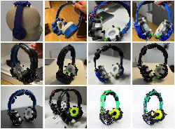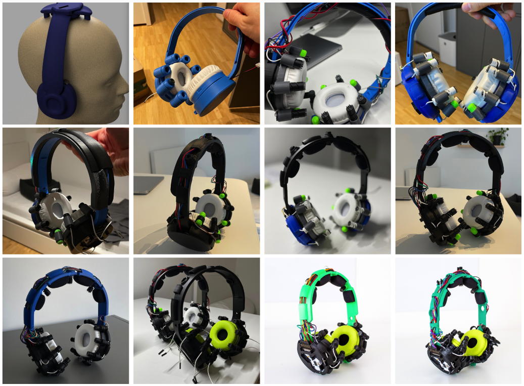 ARグラスによって日常の風景に重畳させてオノマトペを文字として表示することで、聴覚障碍の人でもオノマトペを学べるというシステムをきちんと実現していた。 マイクロホンアレイを用いて音源の方向を推定し、音響分析をしてその音源を推定して対応するオノマトペを推定し、それをHMD内の正しい位置に重畳表示させるという、王道の力強い研究だった。 これは素晴らしい・・・と思っていたら、この発表はその最初の音源方向推定の部分までだった。(17)立体音響と振動の組み合わせによる仮想耳の身体所有感の検討