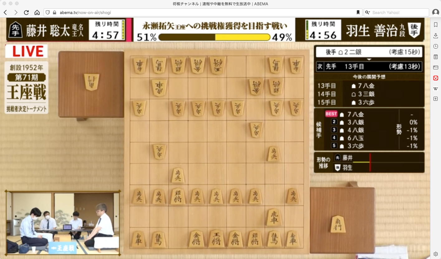 そして昨日の日曜日にはぼちぼち大阪から浜松に帰ってきてみると、なんと午後には甲子園のテレビ中継があり、さらにAbemaTVでは叡王戦第4局の生中継があったが、「千日手挿し直し」でまたまた相穴熊という熱戦が繰り広げられていた。 そこから午後じゅう、両方の観戦を続けていたが、甲子園テレビ中継は途中で終了してその後はYAHOO一球中継に切り替えて夕方にはまたまた勝って16戦15勝1敗(8連勝)となったことを確認した。