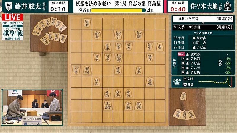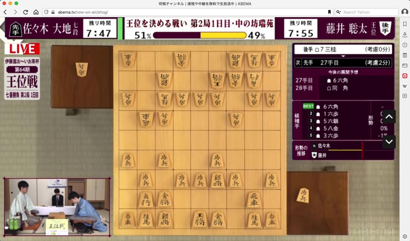 昨日、藤井七冠はベトナムで危なげなく棋聖戦の第1局に勝利した。 これから佐々木大地七段は棋聖戦と王位戦とダブルで大変そうである。 佐々木大地、佐々木勇気、中村太地、とややこしいのだ。