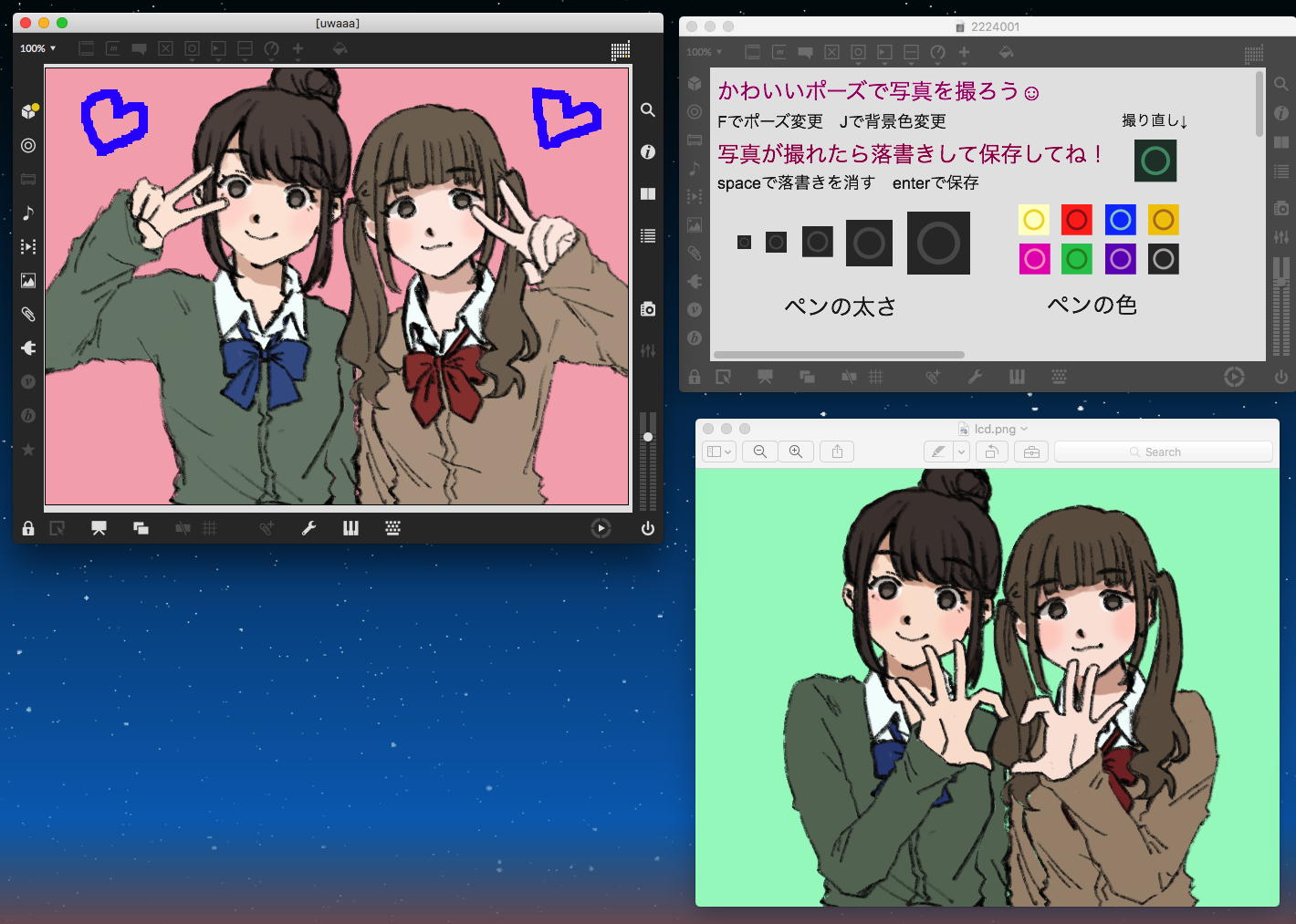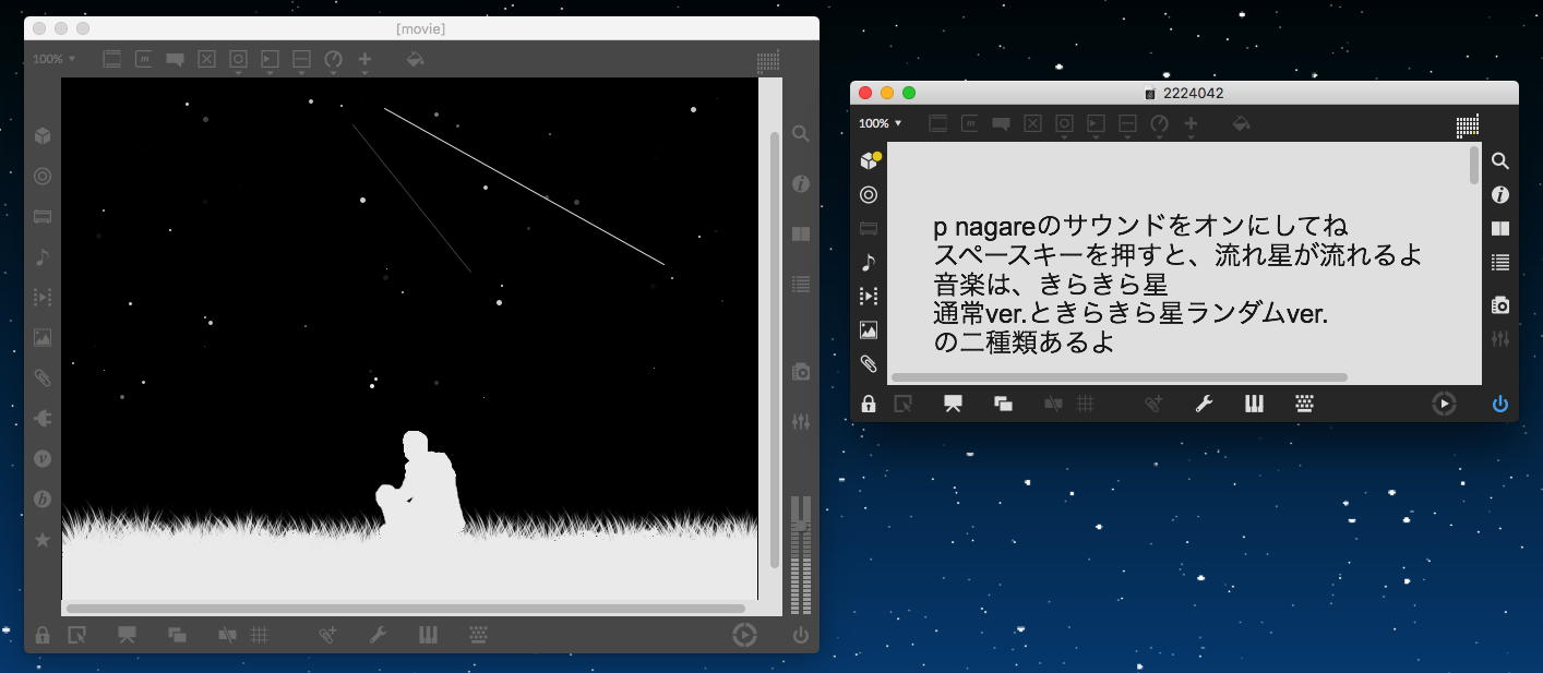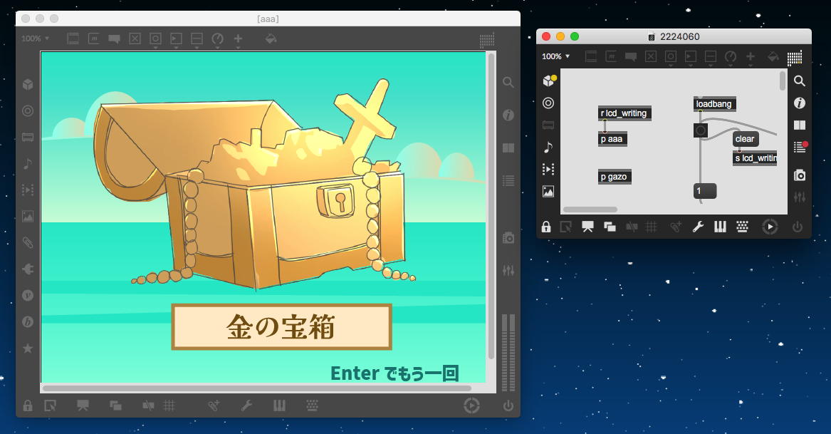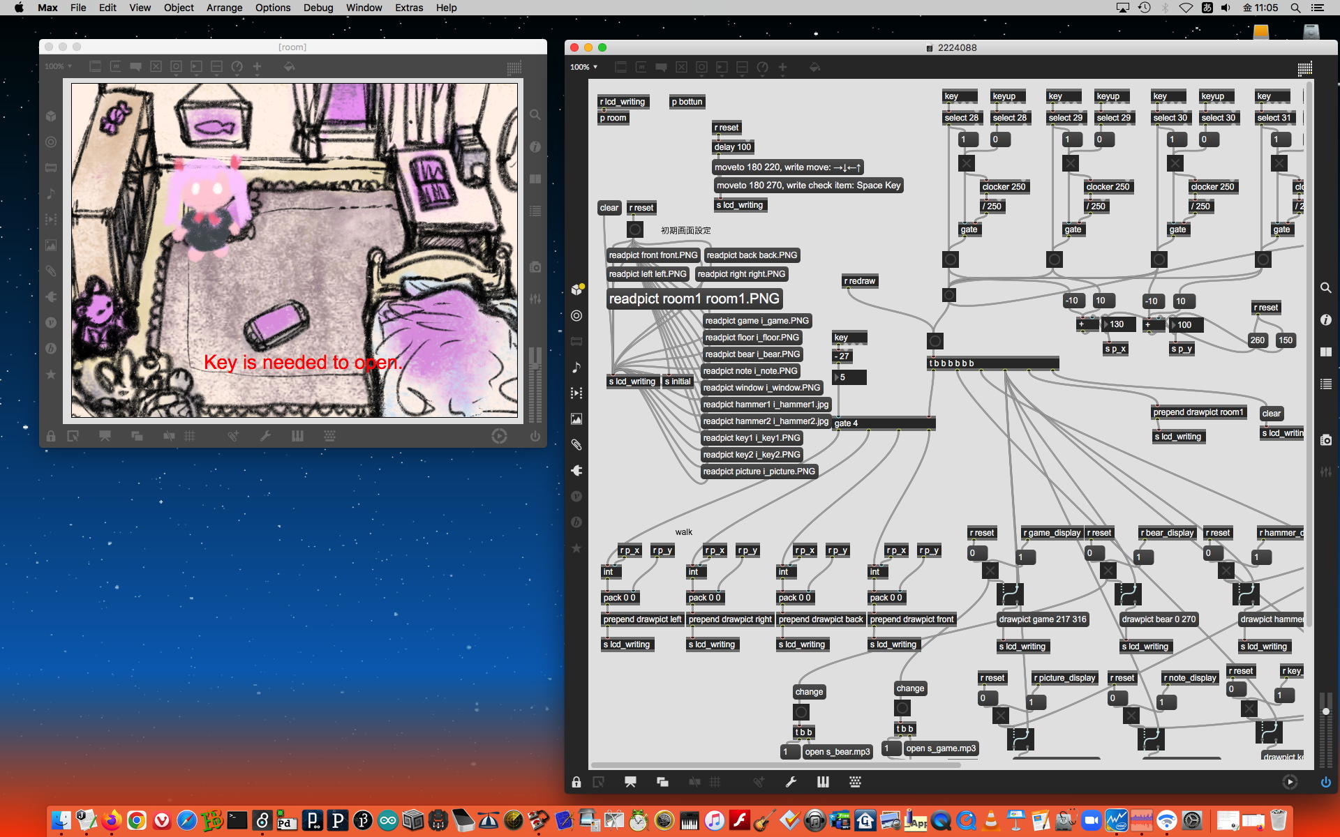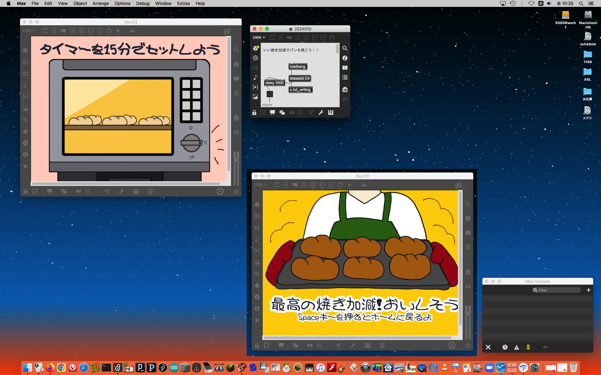そして午前には「領域専門演習」の最終回として、ゼミの高木さん作品の追い込みを このように 進めた。 僕のMacBookAirのMax8でbuildしてアプリケーションに書き出したものは高木さんのMacBook(ほぼ最新)でも動いたものの、一部に謎の不具合があったので、これは今週のゼミと別途アポでの動画記録(→課題提出)の後に再度チャレンジすることにした。 だいぶ応援したものの、ここまで一人で進めたのは、大したものなのだ。(^_^)