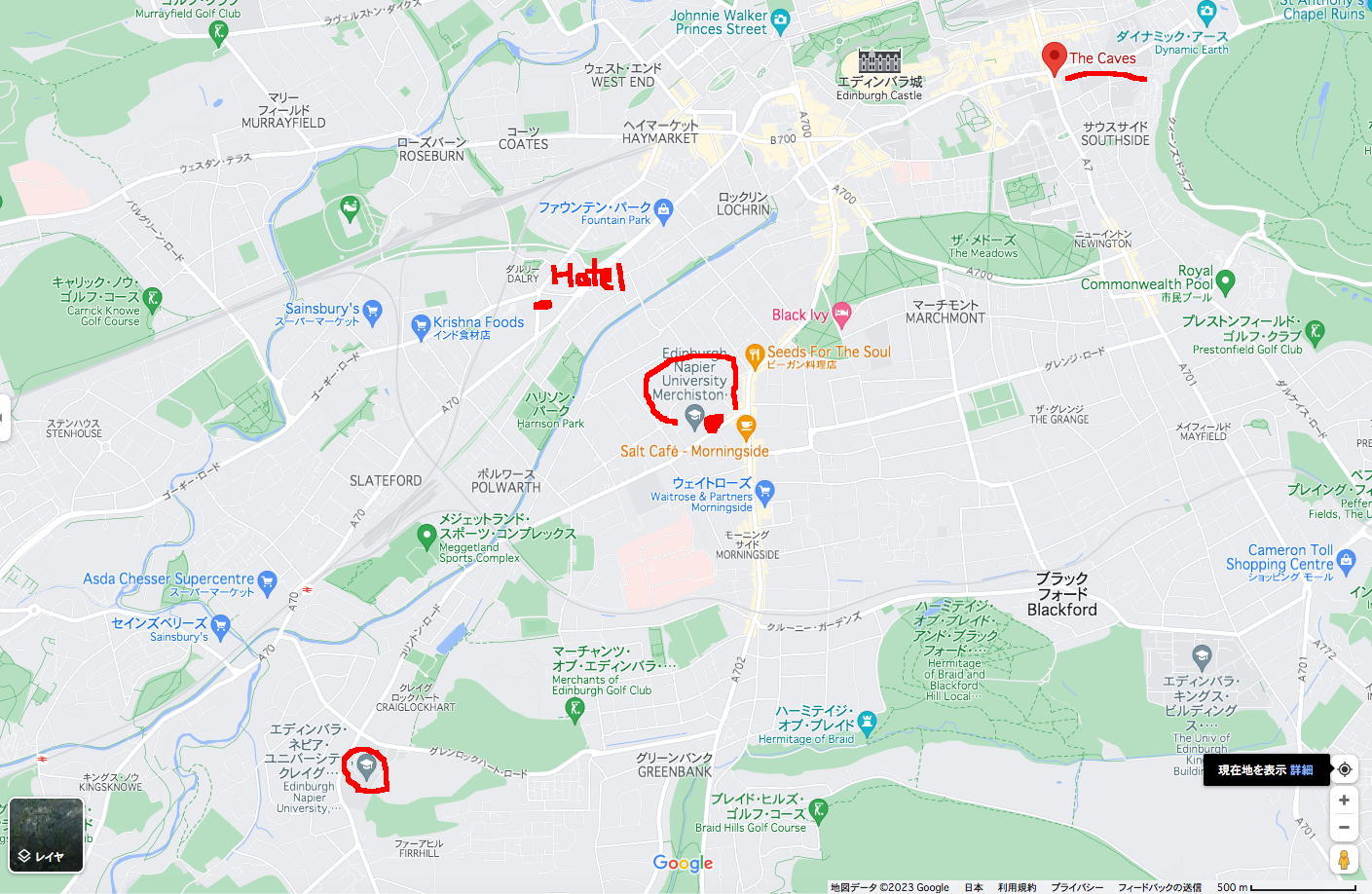 午前にはAM2023のサイトから、市民の足である Lothian Bus のサイトに行って、ホテルの前のバス停、会場となるEdinburgh Napier University's Craiglockhart Campusのバス停、それを結ぶ「4番」のバス、乗り降りはどうやら「タッチVISA」カードをかざすだけで1日何度乗り降りしても最大4.8ポンドと決済されること、などを知った。