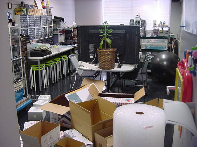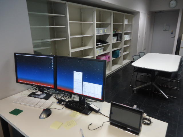さらに京都精華大の平野先生とも「電子回路ワークショップ」に関してやりとりしたり、せっかくなので「断捨離」終盤の3月1日の1106研究室の様子を このように 撮ったりした。 実際にはこの写真を撮った後で、ホワイトボードの下にあった初代iMacの箱を解体して捨てたので、さらにスッキリした。