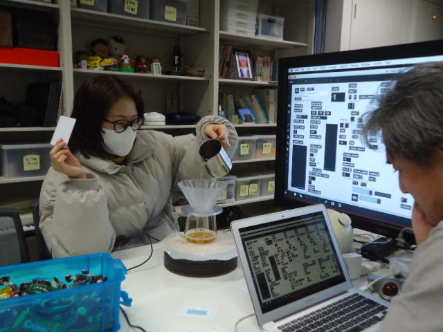 そして4-5限の「メディア数理造形演習」では、後半には来週のネタばれもありながら、 このように 謎の作業や謎の検討が色々と進んだ。 来週あたりには企画案が固まって、いよいよ制作のフェーズに進んでいこう。