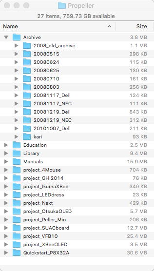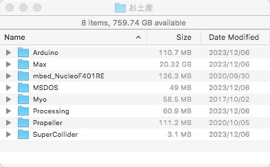 今日はゼミの日だが、準ゼミの2人からそれぞれ、今日はちょうど2限が本ゼミという欠席連絡が届き、M2・王さんも体調不良で午後のアポに・・・という連絡が来て、吉田さんだけという模様となったが、遅刻魔なので11時になってもやってこない(^_^;)。 今朝はフト思い付いて、ワークショップ参加者に「手元にある、僕の知的財産(Max、AKI-80、AKI-H8、Arduino、Propeller、NucleoF401RE、Processing、SuperCollider、Myoのこれまでにやってきた全ソース)をお土産に渡す」という作業に取り掛かった。