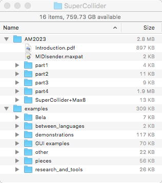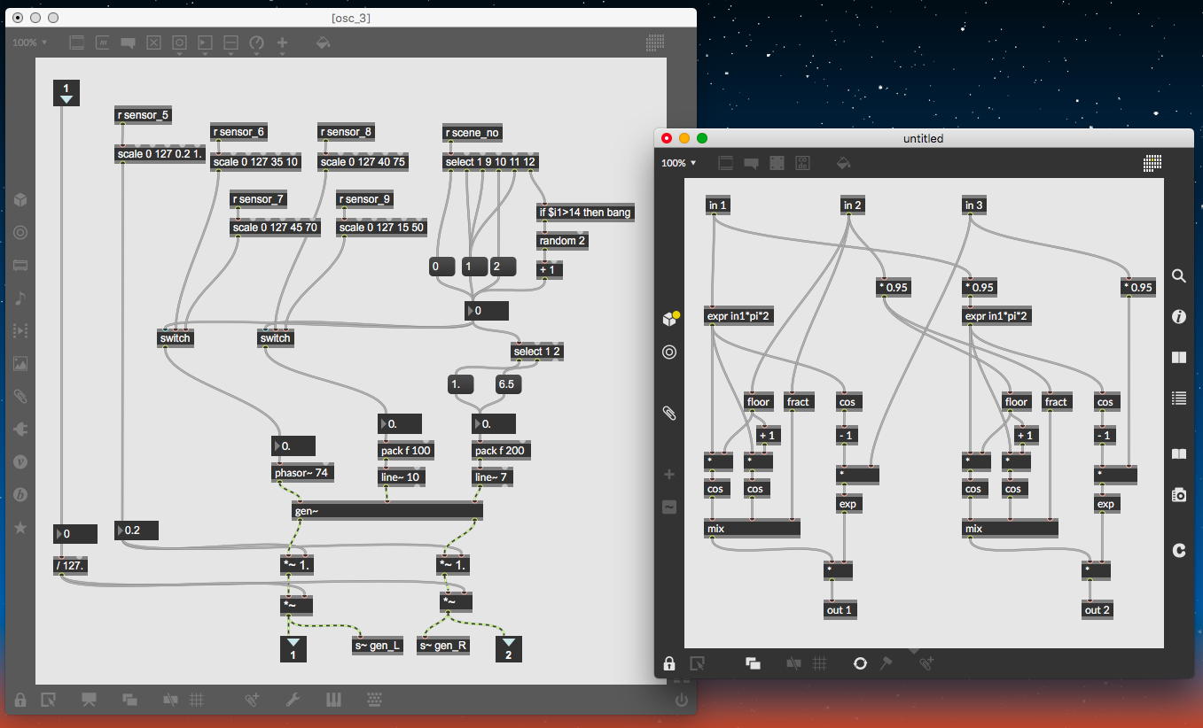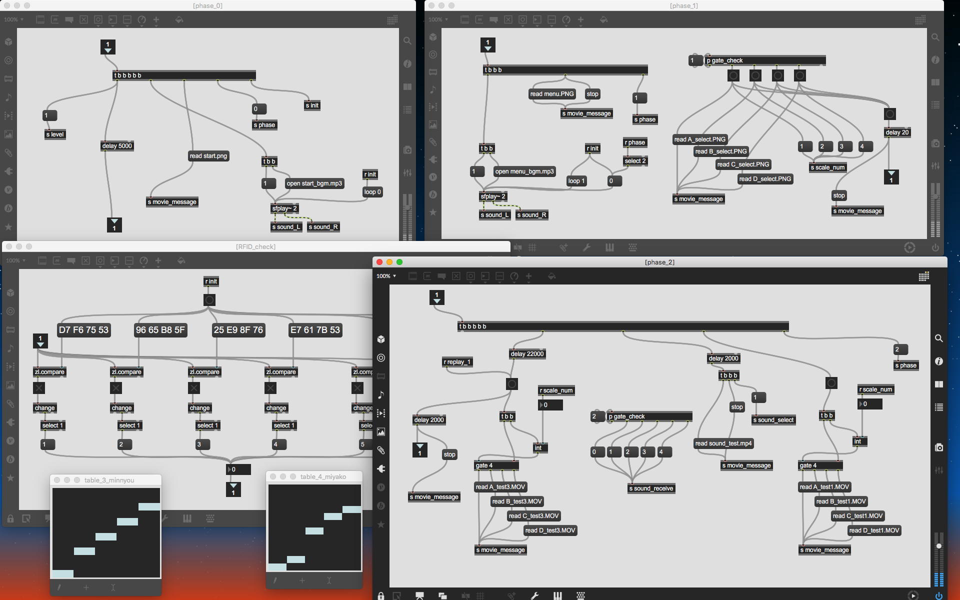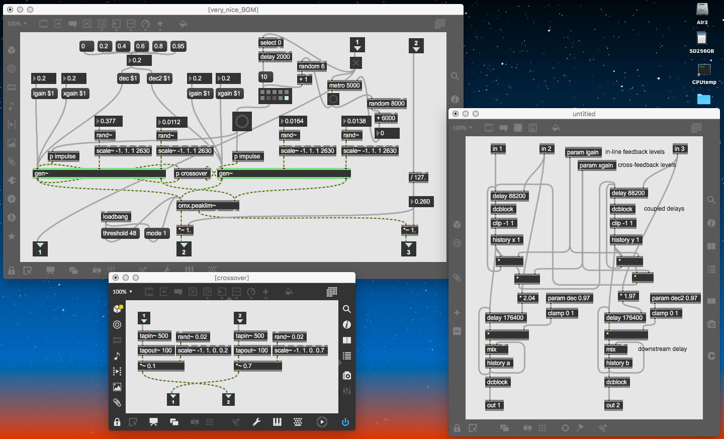 - 上の「Max」ディレクトリ下の「Piecesディレクトリ」では、これまでに公演した作品の関係を全てzipでまとめています。2023年のものは今回の公開レクチャー/ミニライヴで使ったものです