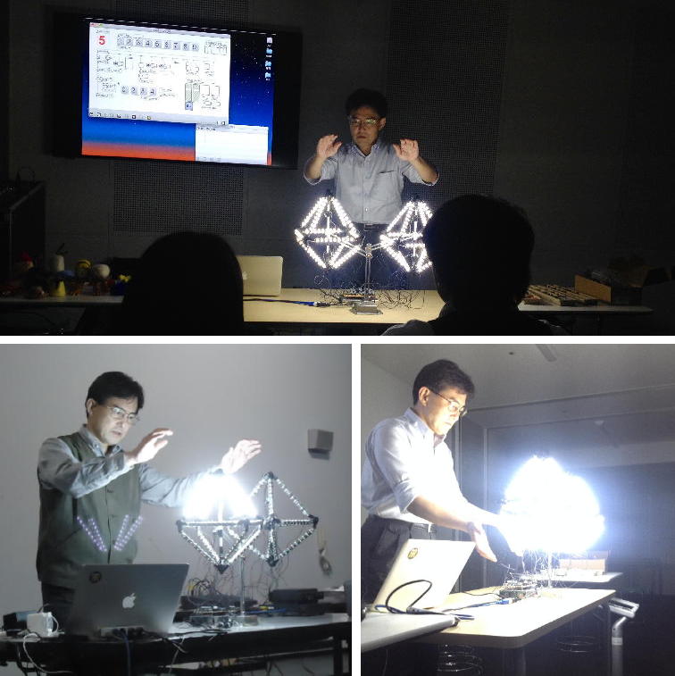 Final Lecture/Workshop by YN の Googleフォーム とワークショップには、参加して欲しかった超お馴染みの超大物からのメイルが届いて、中身がグンと「濃く」なる予感がしてきた。 その嬉しさがトリガとなって、公開レクチャーの会場の「参考展示」として 手作り基板 を予定していたが、これに加えて新楽器のデモ展示を「開場→開始」と「終了→ミニライブ」までの時間に並べるというアイデアを思い付いた。 そして色々と発掘しつつ Final Lecture/Workshop by YN のページに加筆してみたが、だいぶ「見てくれ」が豪華になったような気がする。 次回の「インタラクティブプロダクト演習」の担当回で学生に見せる(体験してもらう)ために、昨日の帰り際に特任助手の藤石さんと学生2人が大部分のブツをマルチメディア室まで運んでくれていたので、そこから移動するという作戦である。