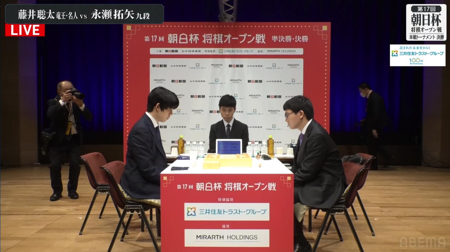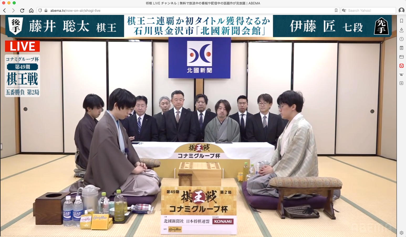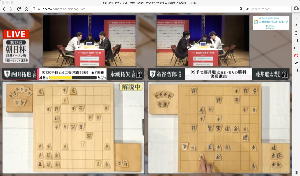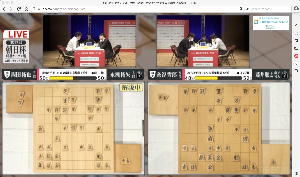6画面のうち、藤井八冠の大盤解説は5時間後の14時からと判明したが、残り5対局は午前9時に以下のように一斉に、というよりも微妙にバラバラに開始した。 大学入試では、各試験室の試験時間にばらつきがあれば不公平となるので、試験監督は毎回、全員で「秒」まで時計を合わせて一斉に「解答はじめ」「解答おわり」を告げるのだが、将棋の場合にはそれぞれの対局室にある時計で測っているので、部屋ごとの誤差はあるのだろう。 5部屋のうち最後の2部屋は同時だったが、それ以外の部屋とは最大で30秒ぐらいの違いがあった。