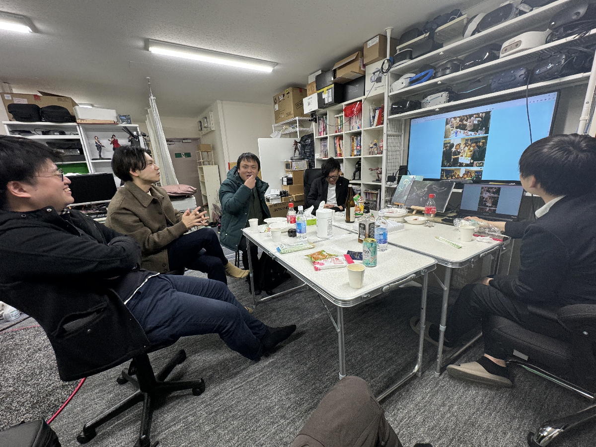 一昨日のJoyJoyは4期生OGの安田さん海老名さんとのサンカラで、4.5時間で26曲を楽しめた。 昨日はSUACが全学終日停電(点検)のため研究室に行かず、自宅に持ち込んだ膨大なブツを整理格納したりした。 合間に見ていた棋王戦は、やはり藤井八冠が圧倒的な展開で、最後の投了の瞬間を見ることが出来た。 今日になって研究室に出てくると、5期生の鈴木クンからのメイルで写真が届いていた。 これは 卒業生有志「謝恩会」 の時に見せてもらっていたのだが、5期生の皆んなが誰かのオフィスに集まって飲んだ時に、僕の研究室ページにある色々な「記録」をツマミにしていた・・・という文脈の写真であった。