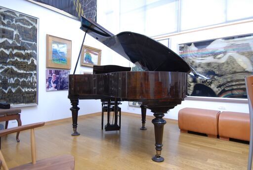 また台には、両袖にガラス戸の小物入れ(高さ調整可能な棚付き)がついており、楽譜やその他ピアノ関連の小物類を収納できます。