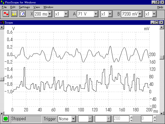 下段:そのチャンネルをA/D-フィルタ処理後の生信号