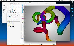 以下の「07-TwistingKnot」は、同じく「Perlin Noise」を使ったランダム系の「数理造型」であり、断面が波打っている柔らかな棒状の物体(カラーもランダムに変化)がランダムな曲率でうねうねと伸びていき、自分自身とぶつかってもめり込んでいく このような いい感じのリアルタイム生成3次元CGである。 まぁ、Max/jitterでも実現可能だと思うが、これで第7章「3D」がおしまいとなった。