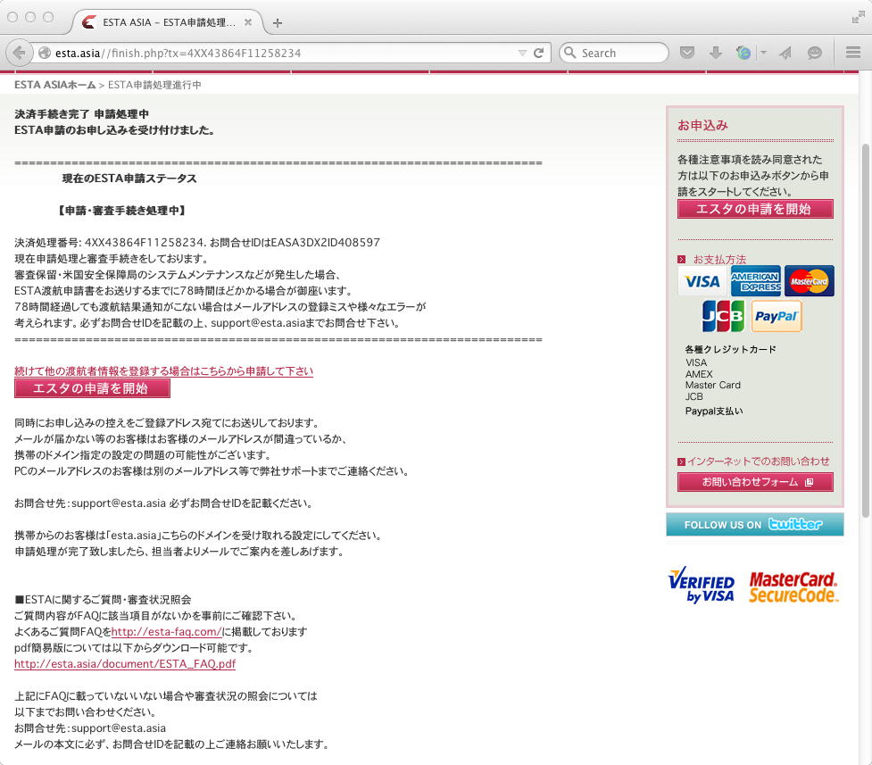 国際会議が開催されるという時に、応募するかどうかを場所で考えるというのはこの世界では常識だが、ヨーロッバやカナダであれば無条件に参加を画策し、アジアであれば開催国によって考えて、アメリカの場合には同時期に他で無いかどうか調べて、無ければ仕方なく応募・・・というのが最近のパターンである。 ほぼ同時期にヨーロッパとアメリカで国際会議がある場合には、これまでも100%、欧州行きにチャレンジしてきた。 ・・・ここまで完了したところで気付いたが、どうも上の「ESTA(公式)申請センター」というのは、ちっとも公式じゃなくて(^_^;)、申請代行業者だった。 前回は米国安全保障局(CBP)のサイトで直接、英語で入力したのだが、これだと14ドルで済む。 ただし、けっこう入力が面倒くさかった記憶があるので、まぁ、これでもいいだろう。