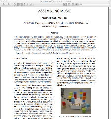 Assembling Music is a combination of three projects. The common link claims to be a redefining of a compositional concept of the arrangement of musical material into a physical performative approach. The technical and musical work that has been assembled here is interesting. There are good ideas that have been well applied musically and with technology. The paper itself needs a lot of work to be coherent and workable.The language of the paper is stiff and hard to read through, often times no keeping to the primary concern of "Assembling Music". There are some typical non-native English speaker issues, that might be okay if well presented.